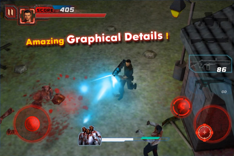 一進入遊戲,玩家會隨著任務指示而融入劇情,並一邊使用斧頭、電鋸、槍枝等各式各樣的武器,來驅趕步步進逼的殭屍。畫面左邊是操控角色移動的方向,右邊則會出現對應劇情的動作鈕(跳躍、斧頭、獵槍攻擊等),只要遵照遊戲內的方向指示就不會迷路。