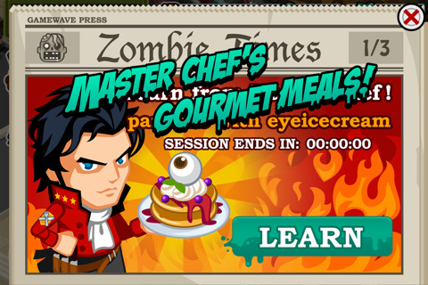只要玩家煮出每個殭屍喜歡的菜,就可以攻略一種殭屍並收集成冊,有時是為了要完成任務,必須滿足特定殭屍的一定數量才能完成,但這款遊戲的主要樂趣還是在 60 種食譜中,像是:拇指熱狗堡、血漿鬆餅、大腦漢堡等,烹飪過程到底是如何驚悚呢?