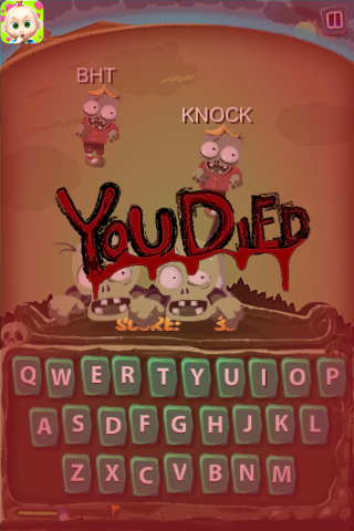 由 Retina 所發行的《殭屍快打(ABC Zombie)》最近一次在 8 月 5 日更新過,本來一看到噁心的 ICON 圖還以為又是恐怖遊戲,結果一體驗才知道是鍵盤打字遊戲,而且是在手機小小的輸入畫面上比快,是一種蠻另類的打殭屍遊戲。