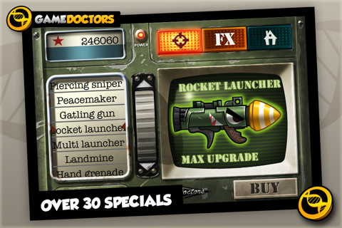 一開始的殭屍都是慢慢行走過來,但是越後期就開始出現各種從天上飛來的、地上鑽出來的各種殭屍,會讓玩家開始手忙腳亂,所以透過一關關逐漸累積得到的金錢後,在下一次挑戰開始前,為自己購買新的武器,然後設置在下方快捷列,就可以讓武器攻擊有各種變化,不管是下毒、冰凍殭屍延遲行動,還是射速變快,攻擊起來就更迎刃有餘。