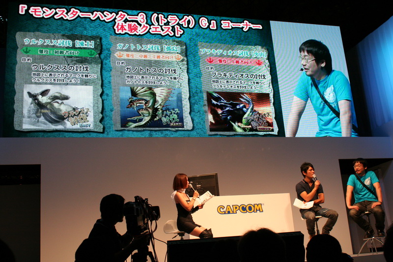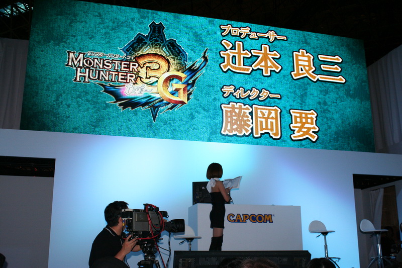 魔物獵人 3 G》的專屬攤位,現場也展出了試玩的 N3DS 機台,以及邀請到製作人辻本良三以及監督藤岡要登台簡介本作特色。