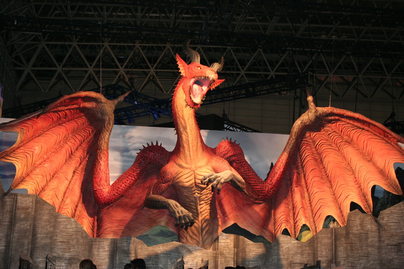 幅員廣大的攤位以歐洲中古世紀風格的城牆砌成,在攤位中央有一尊極為搶眼的巨龍,擺出怒吼的姿勢十分具有氣勢。