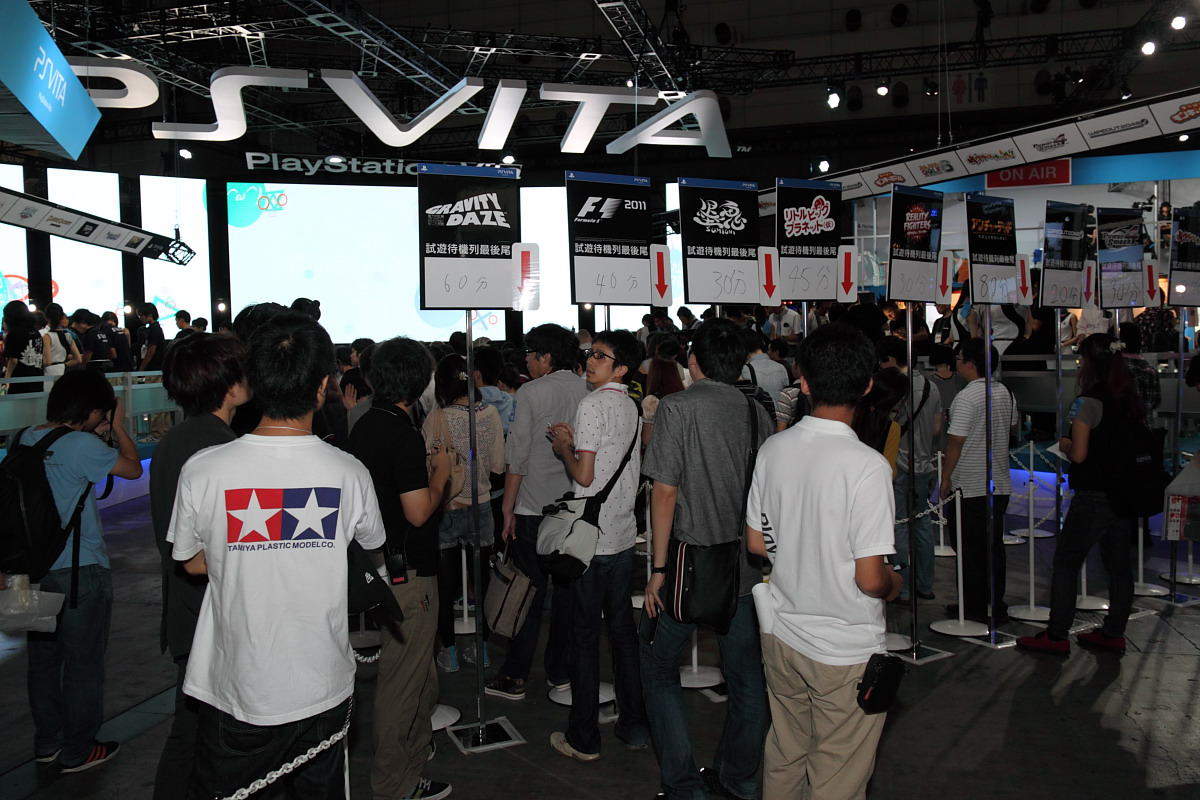 SCEJ 同時在自家攤位上設置了大型的 PS Vita 專區,設置數十台 PS Vita 試玩機台提供參觀者親自試玩即將於 12 月隨 PS Vita 首發的遊戲。由於這次是 PS Vita 在日本首度公開展示,因此即使開幕首日是限定資格入場的業者日,仍吸引了大量參觀者排隊等候試玩,反應相當熱烈。
