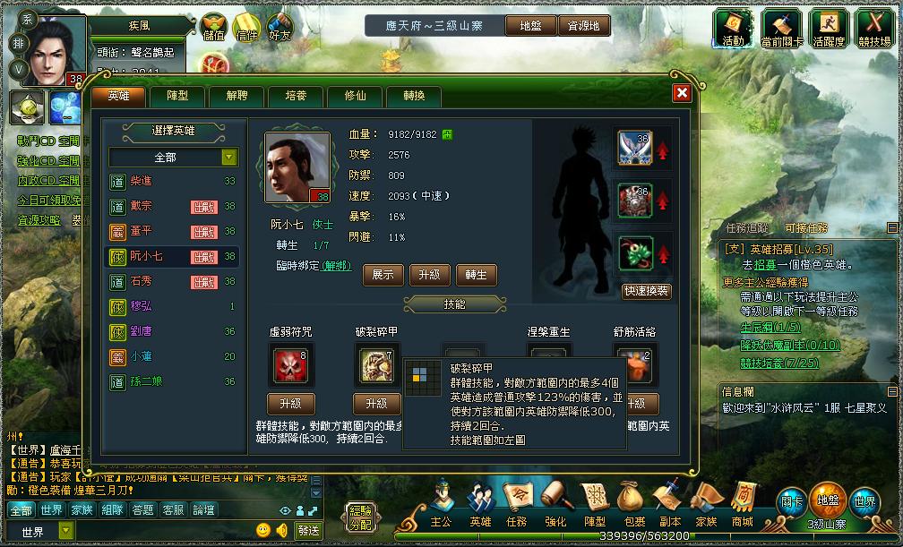108 個英雄好漢,各個身懷絕技,在遊戲中也是出類拔萃的。每個英雄都有不同的技能組合,玩家盡可讓麾下的英雄習得絕技,選擇不同的英雄出戰。