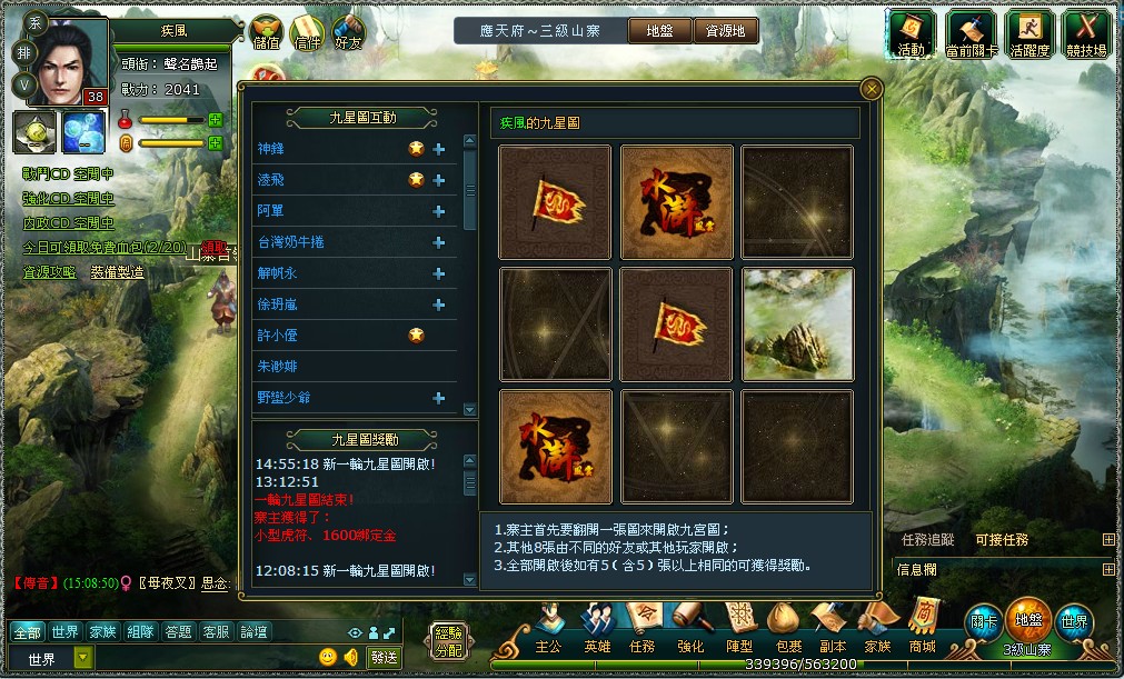 “九星圖”系統是遊戲內特有的一個系統,玩家首先要翻開一張圖來開啟九星圖,其他8張需要由不同的好友或其他玩家開啟。當所有九星圖都開啟後,會根據翻圖的結果獲得相應的獎勵。