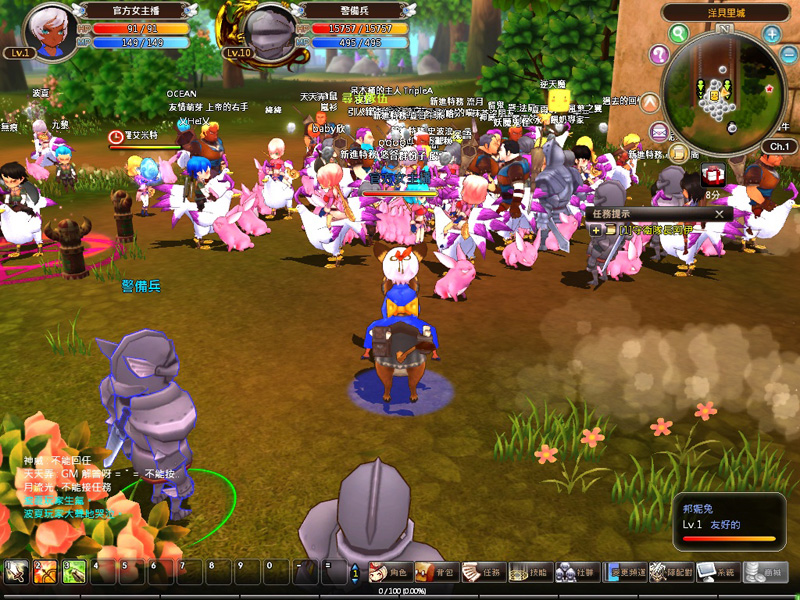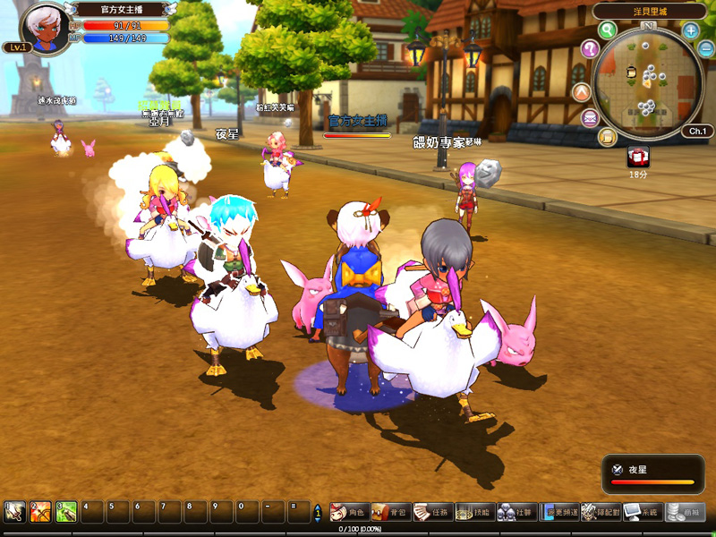 億泰利表示,CCB 活動第一天登入後,玩家立刻就有一隻坐騎「飛毛鴨」,所以不到幾分鐘的時間,就出現人手一鴨的盛況。主城「洋貝里城」內放眼望去全都是鴨子騎士,玩家可以感受到坐騎的趣味魅力,因為飛毛鴨除了帶著主人四處飛快的趴趴走外,當呆立不動時,還會呱呱叫,十分逗趣。