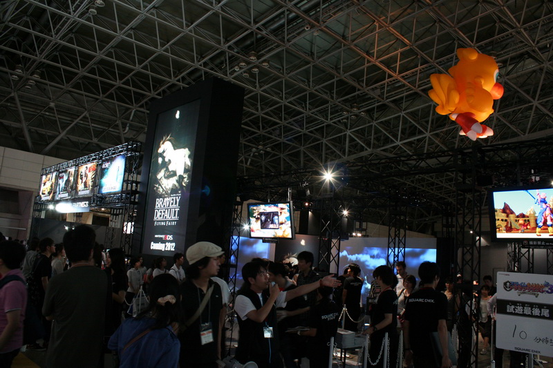 SQUARE ENIX 本次東京電玩展展出攤位和去年相同設於 2 廳,在活動主舞台以及鬥劇會場的隔壁攤位。攤位布置簡潔的以黑色的鋼架所搭置,並且在各試玩遊戲區清楚的標示出遊戲標題和主視覺插畫,可以令參與玩家快速順暢的馬上找到想玩的作品。