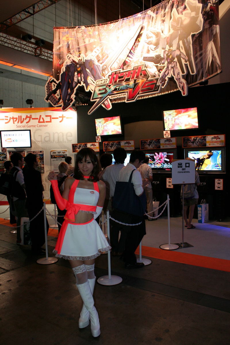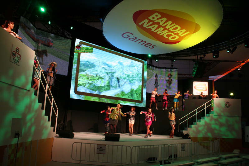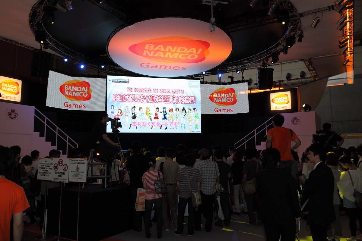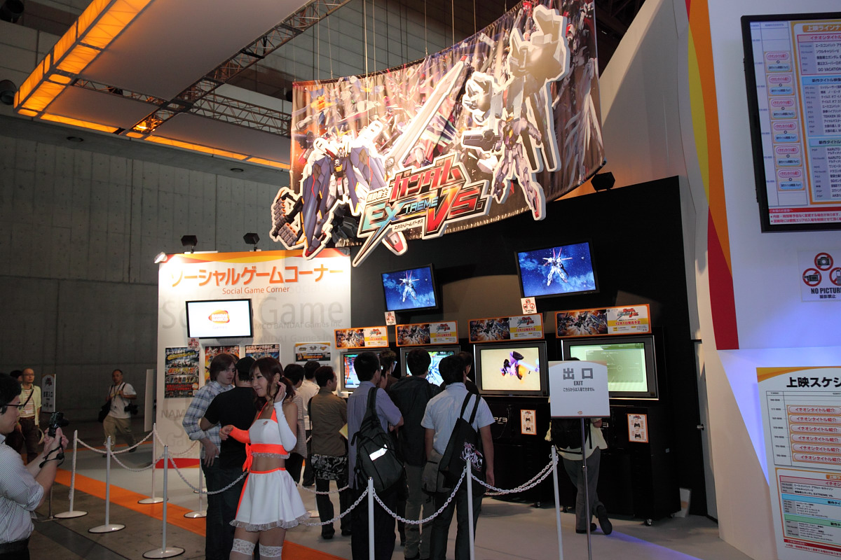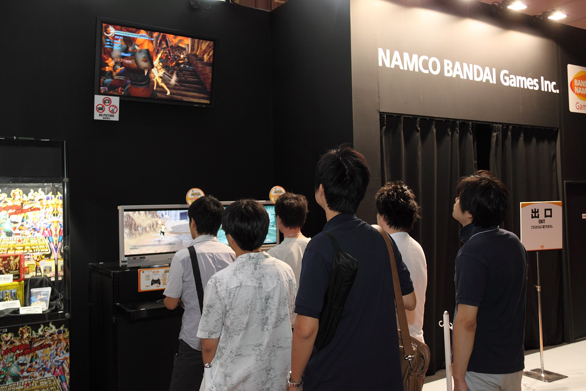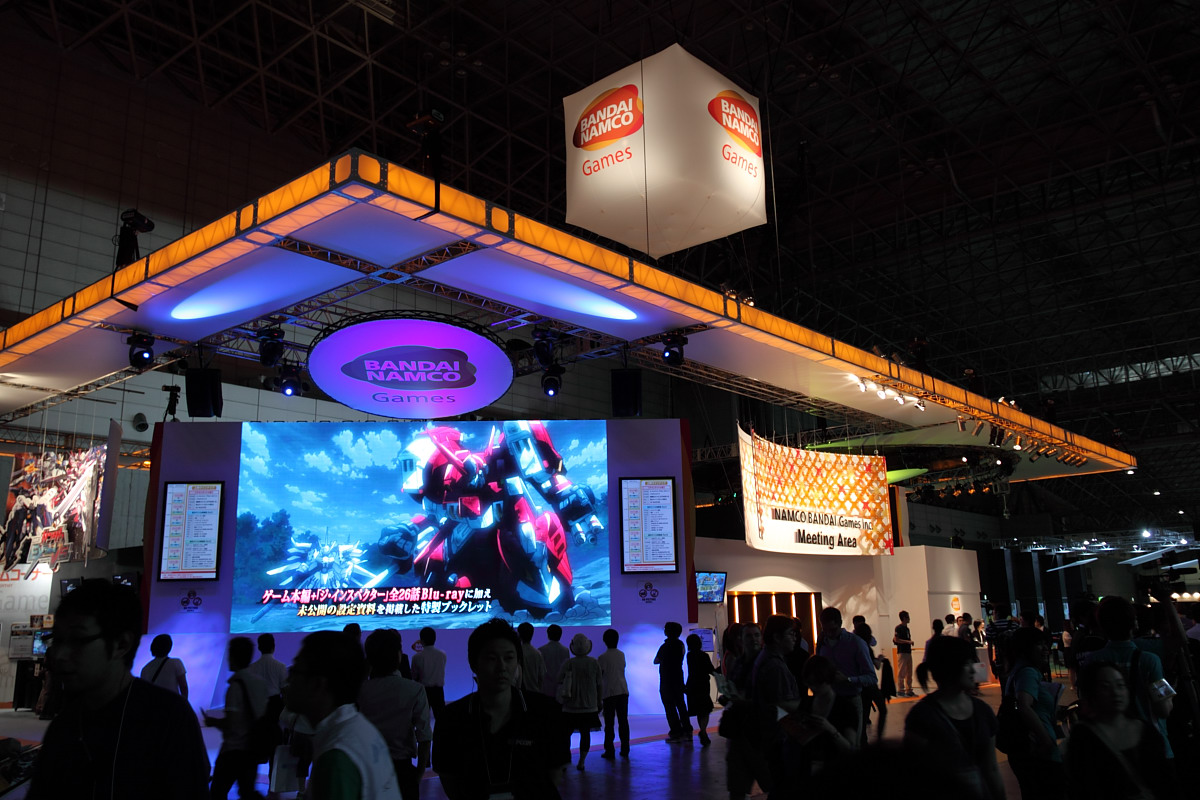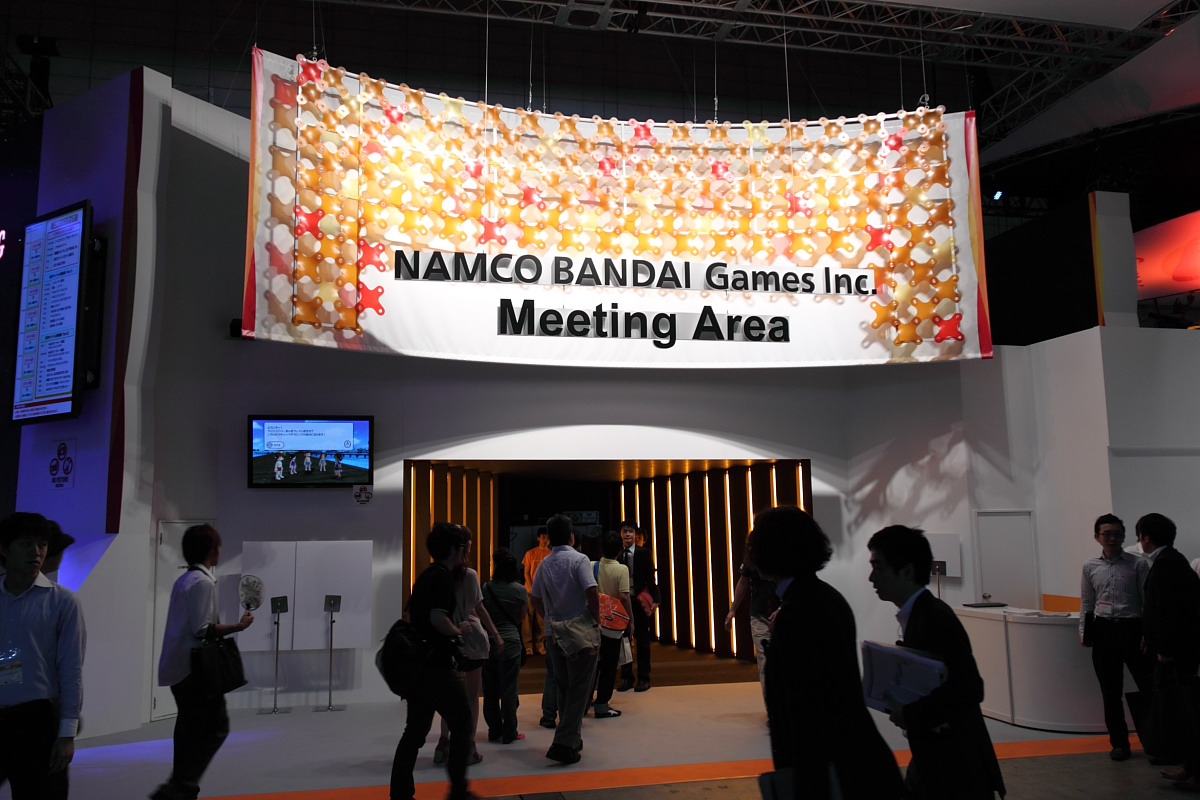 在攤位布置上 NAMCO BANDAI Games 採用和商標相同的橘+黃的明亮色調,攤位十分好認搶眼。正面映入眼簾的首先是有著 LED 陣列大螢幕的舞台區,通過後則是設置在攤位內部的劇院區域。而在面對連絡通道的另一面則是超大尺寸的 LED 陣列大螢幕輪流播放主打作品的宣傳影片,並且在旁架設了本次電玩展的主打作品《機動戰士鋼彈 極限 VS.》的試玩機台。