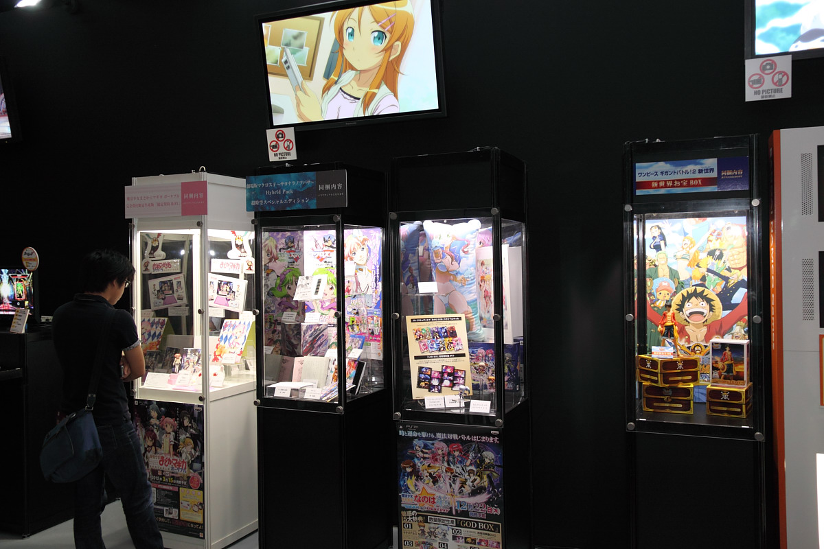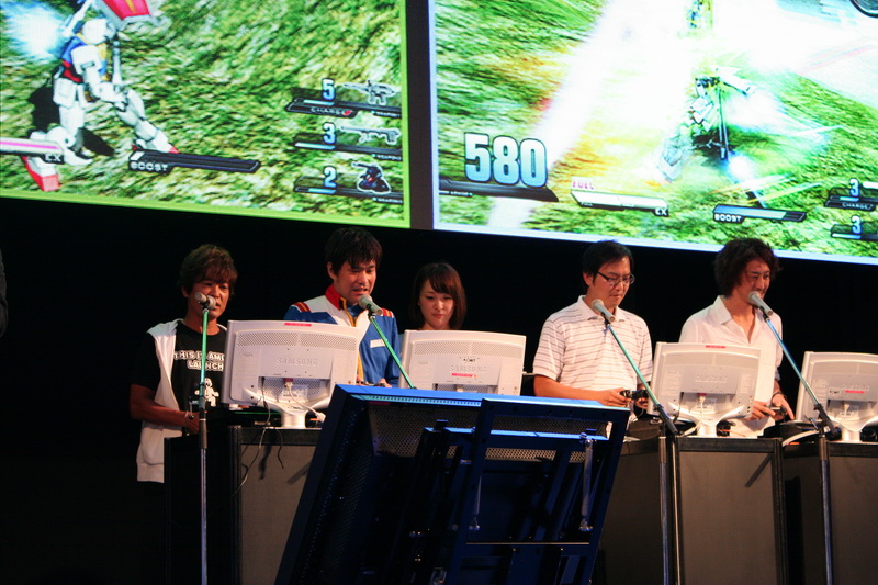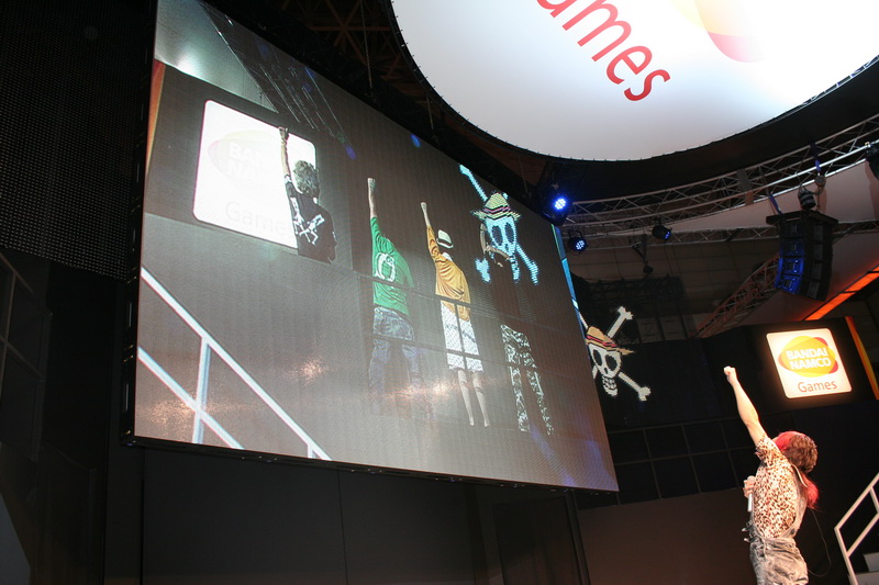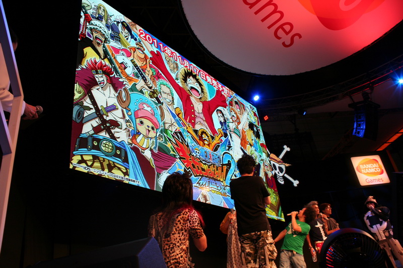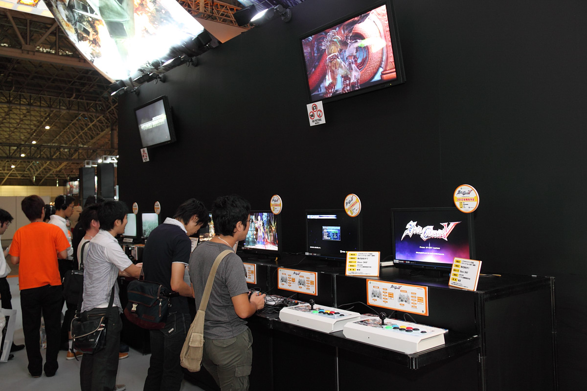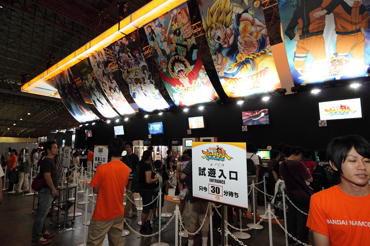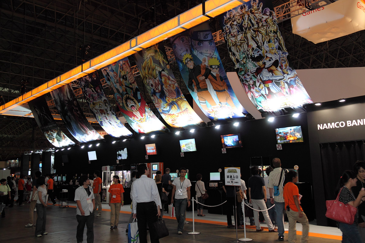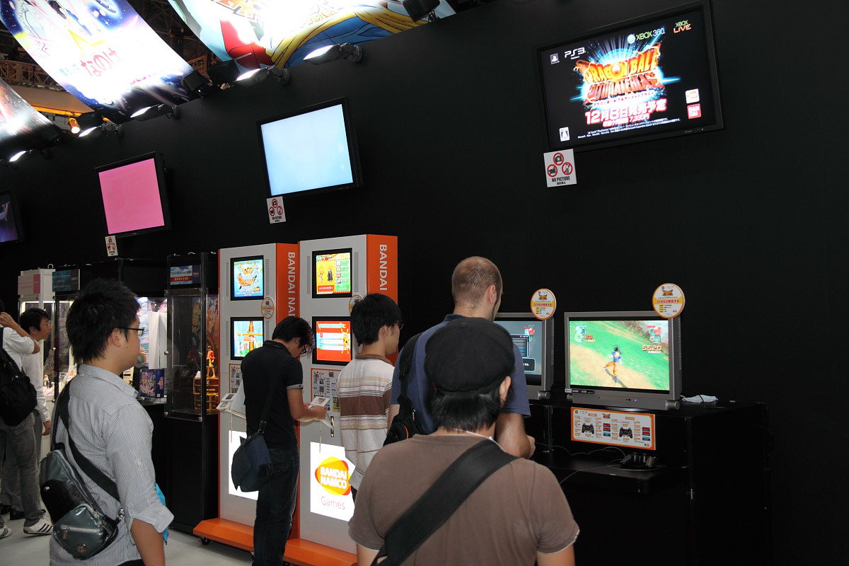 在攤位布置上 NAMCO BANDAI Games 採用和商標相同的橘+黃的明亮色調,攤位十分好認搶眼。正面映入眼簾的首先是有著 LED 陣列大螢幕的舞台區,通過後則是設置在攤位內部的劇院區域。而在面對連絡通道的另一面則是超大尺寸的 LED 陣列大螢幕輪流播放主打作品的宣傳影片,並且在旁架設了本次電玩展的主打作品《機動戰士鋼彈 極限 VS.》的試玩機台。