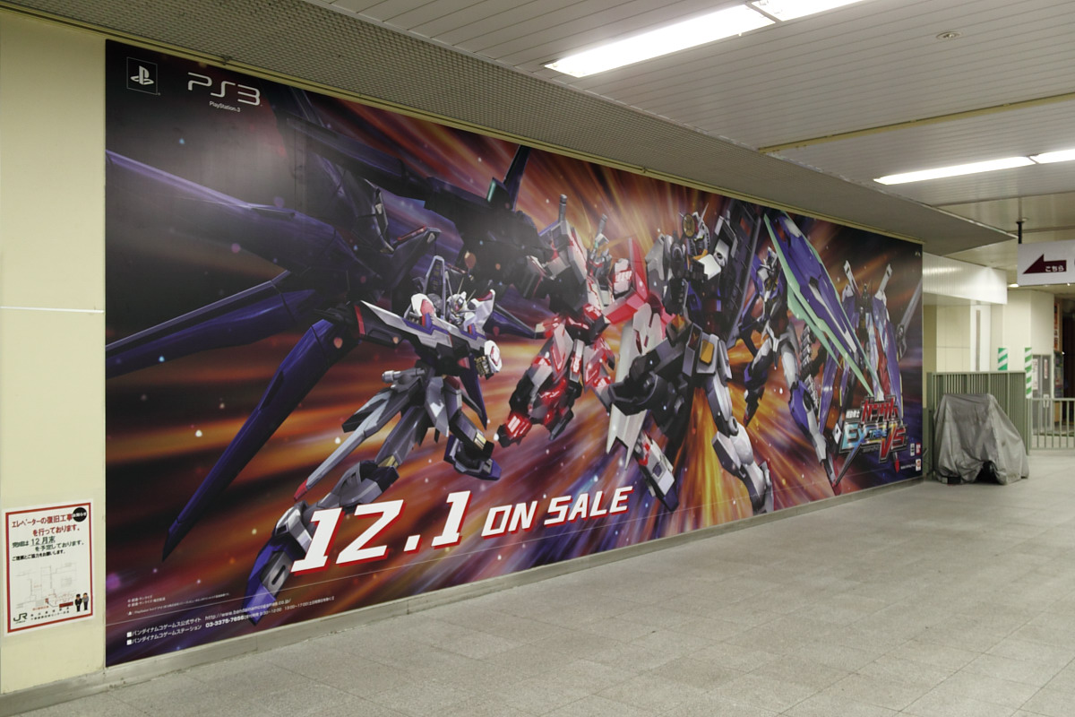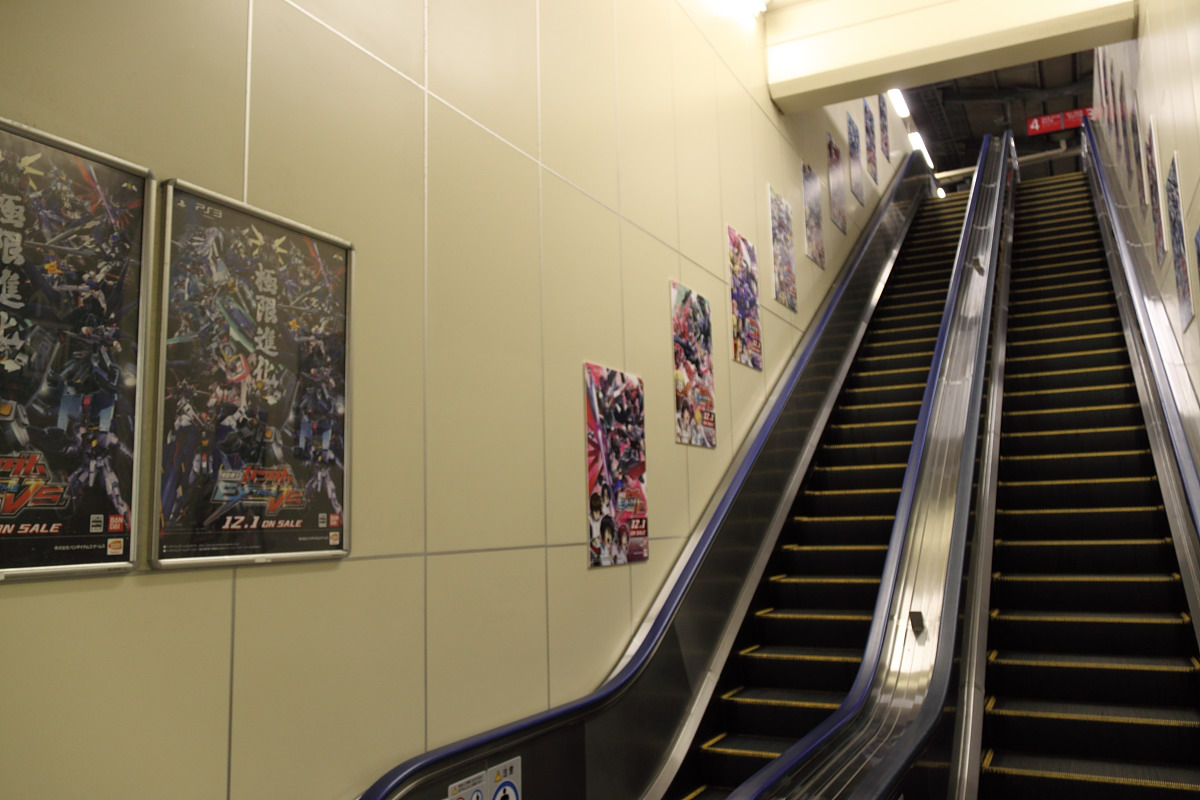 附帶一提,NAMCO BANDAI Games 也在東京電玩展所在地的「海濱幕張」車站設置了一連串的宣傳廣告,可以看到整個車站滿滿的都是鋼彈的圖像非常搶眼。