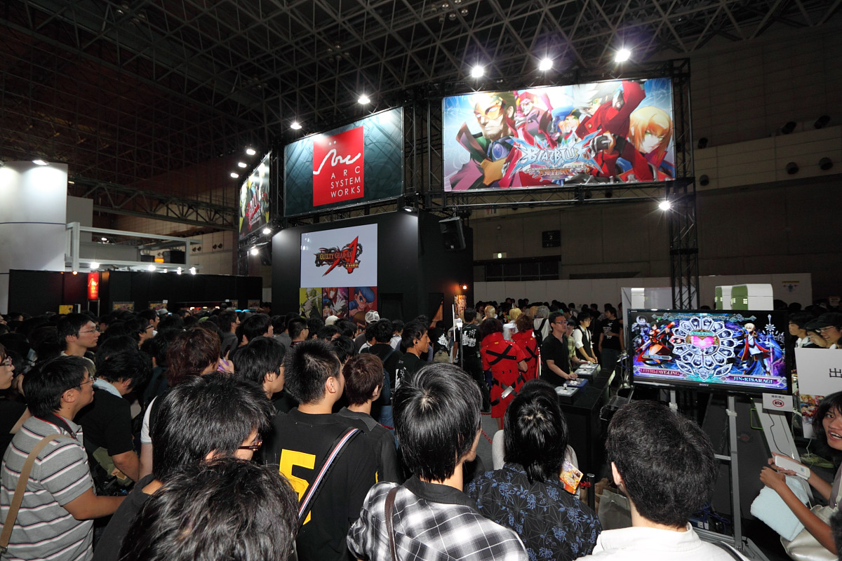 本次 Arc System Works 在東京電玩展中實際設攤宣傳自家新作遊戲。Arc System Works 攤位設於 KONAMI 攤位的右側,佔地雖然不比一線大廠的規模呈現中小型的擺設,不過也是吸引許多愛好格鬥遊戲的玩家駐足試玩新作遊戲。