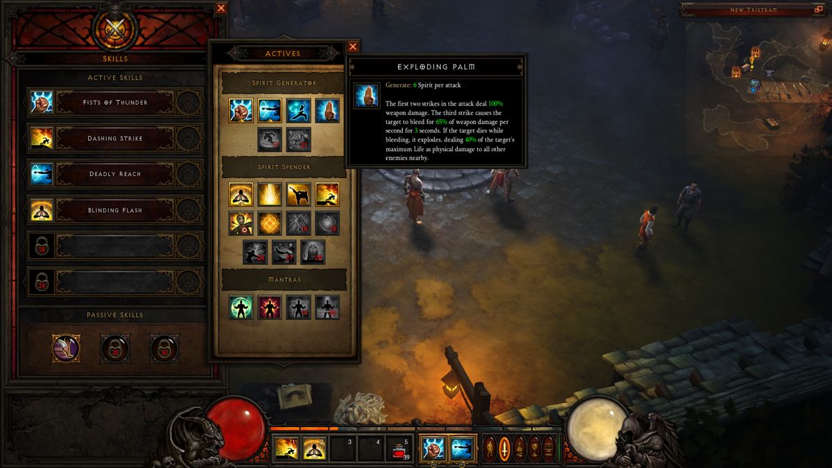 爆裂掌(Exploding Palm): 前兩擊為一般攻擊,第三擊附加流血效果,若對方死於此效果則會爆炸,並造成周遭敵人大兩傷害,實用度高。
