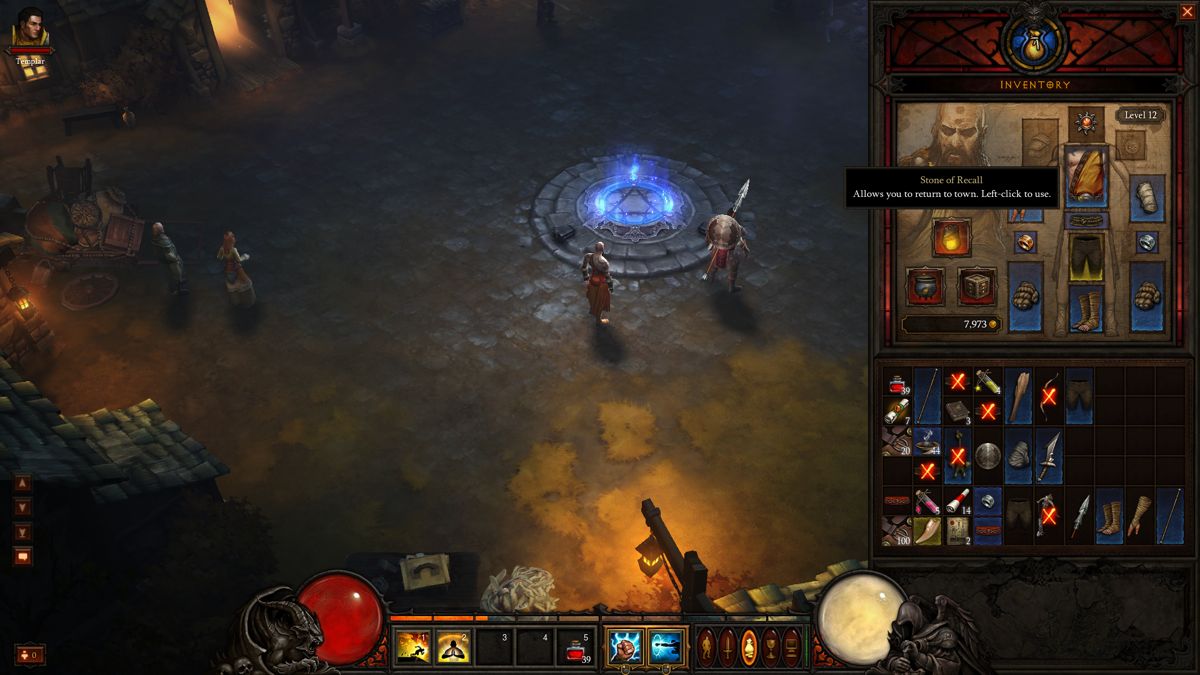暗黑破壞神 3 》中也推出了解決方案。在初期的任務中,玩家將可獲得喬丹寶鼎(Cauldron of Jordan)、涅法雷姆方盒(Nephalem Cube)以及召喚之石(Stone of Recall)。首先喬丹寶鼎是個有趣的東西,他的命名參考了二代玩家的交易工具「喬丹之石」,玩家將可無限使用喬丹寶鼎將所有用不到的物品轉化為現金,這與回城鎮再賣給商人的結果是一樣的。而涅法雷姆方盒則提供玩家分解不必要的物品,這些物品可讓玩家強化村莊的鐵匠,進而鑄造出更強大的物品供玩家使用。最後召喚之石則非常類似《