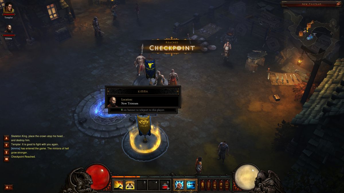 在多人遊戲的部份,玩家設計的戰旗即派上了用場。玩家在進入公眾遊戲(Public Game)後,將可從城鎮中的旗幟發現到這些玩家身在何處,直接點選這些旗幟將可直接將玩家帶到指定隊友的身邊。而如同前作,更多人加入遊戲將會使得怪物更加強大,為了鼓勵玩家組隊,Blizzard 針對了拾取物品的機制作了重大的變化。玩家 A 所看到的所有掉落物品,包括錢、藥水、任務物品等,都只有玩家 A 自己才看的到。玩家 B 也將會看到專屬於自己的掉落物品,換言之,今天組隊將毋須再擔心誰搶走了自己想要的物品,因為玩家將看不到其他玩家的掉落物,除非玩家 B 將物品拾取後再丟在地上,玩家 A 才有辦法看到該物品。