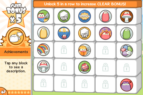 Gum Drop!》遊戲中還可以透過收集成就來升級,讓玩家更快累積遊戲積分。而且遊戲支援 Game Center,讓玩家可以線上與其他玩家競爭名次。此外,這款遊戲還額外支援九種不同語言(包含中文)。