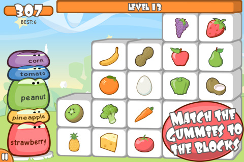 Gum Drop!》,是由 Playees 廠商開發,Chillingo 上架營運的圖文反應益智遊戲。根據官方表示,遊戲內容是全新的遊戲方式,挑戰玩家看到文字後,尋找對照圖片的速度有多快,可以測試玩家左腦右腦的協調及反應能力。