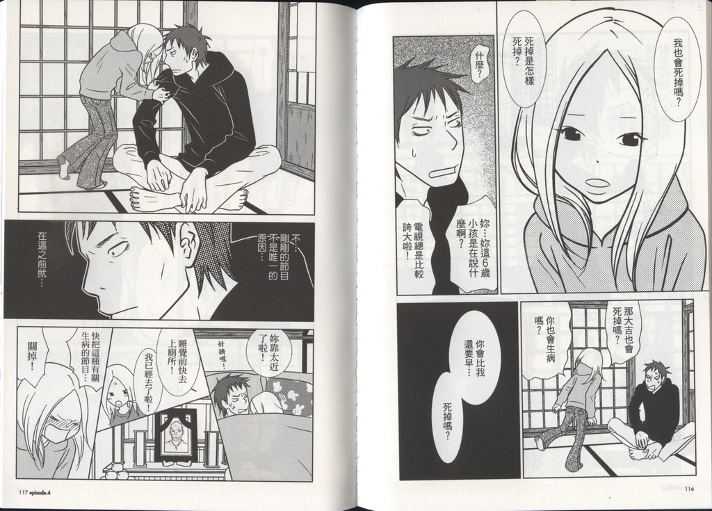 一起生活之後,才發現凜的內心所思考的問題,並不如自己所想像的那麼簡單。當大吉決定偷偷尋找凜母親的下落而到外公家時,竟然完全找不到任何與凜媽媽相關的線索,但卻在房裡找到了不應該出現的東西……作者在《