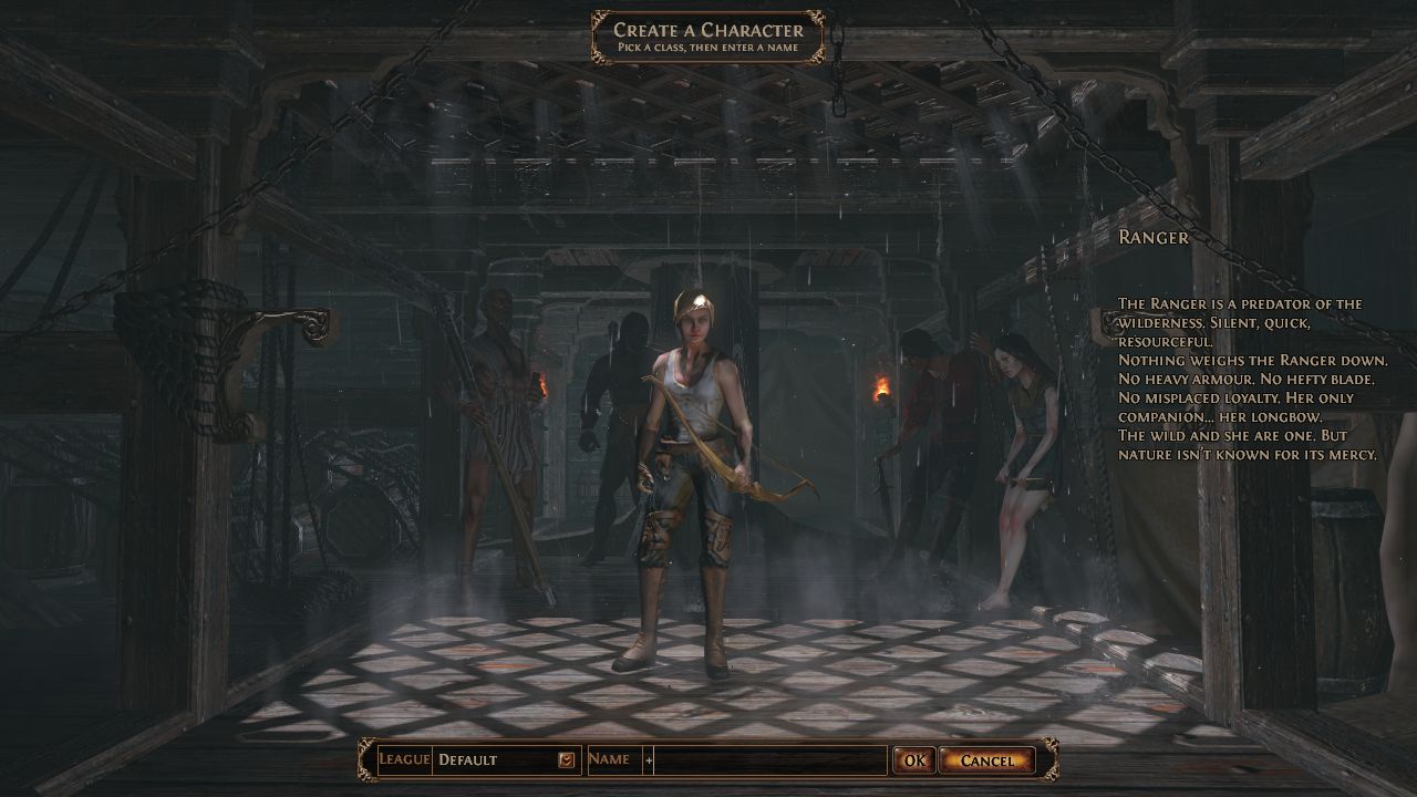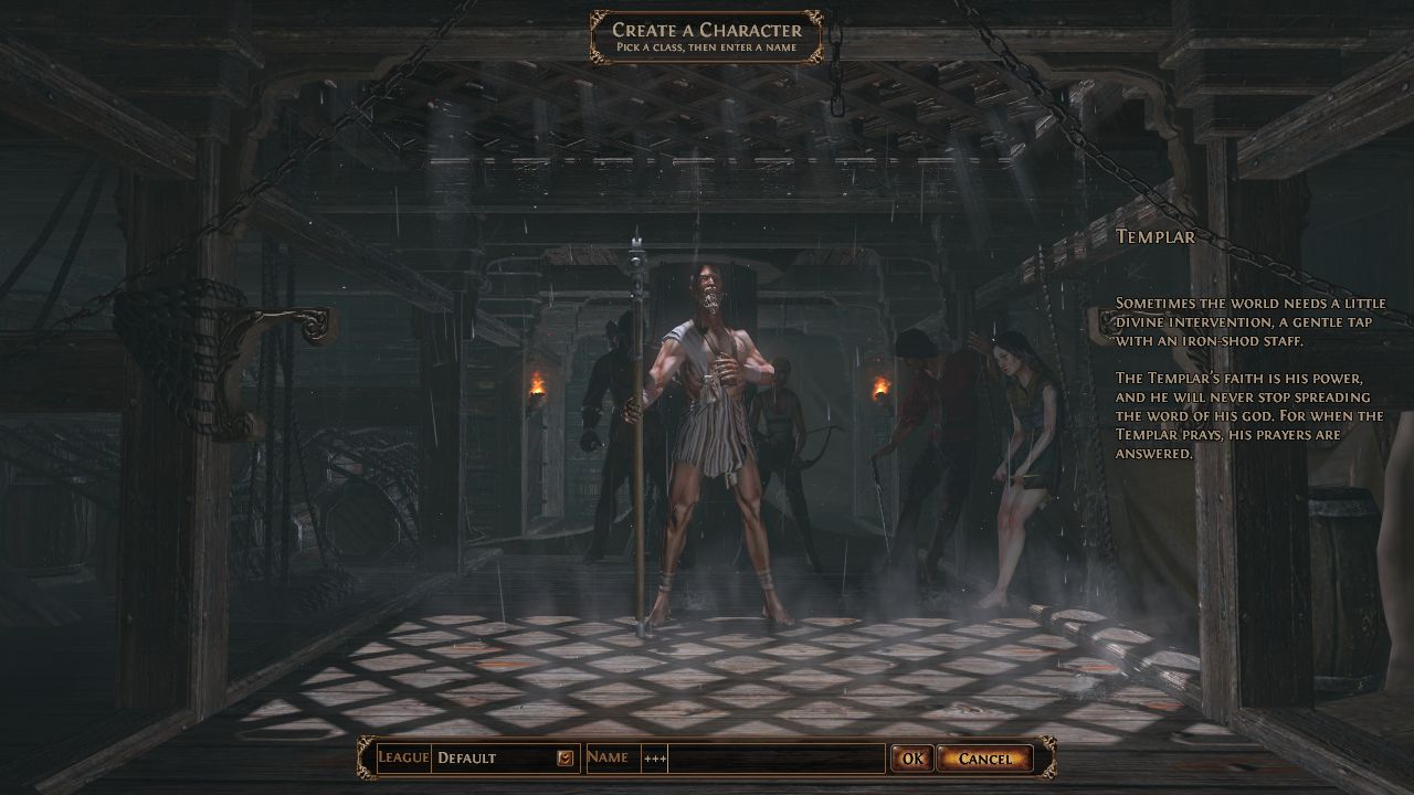 開始前我們可先選擇扮演的角色,包含「掠奪者(Marauder)」、「遊俠(Ranger)」、「巫婆(Witch)」、「決鬥者(Duelist)」、「聖殿(Templar)」等5位,每位角色都有專長的屬性,玩家在決定前可得好好考慮才行。