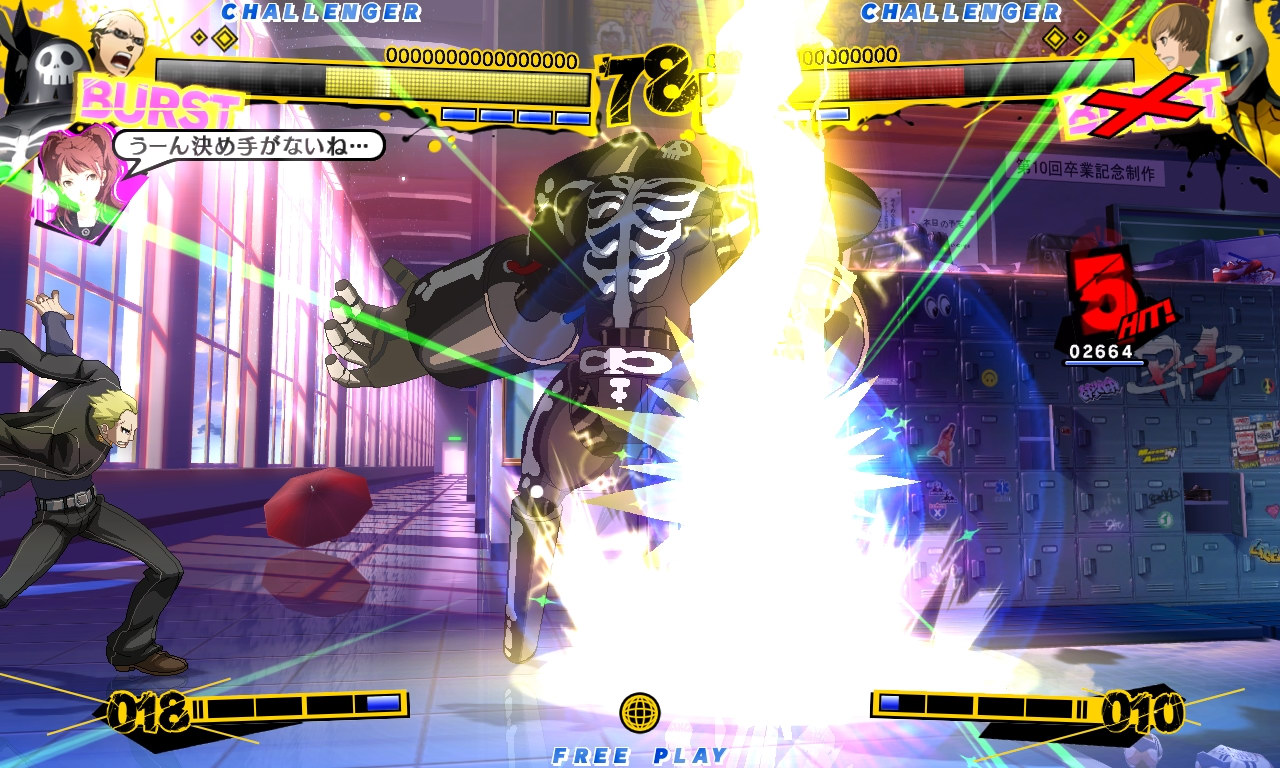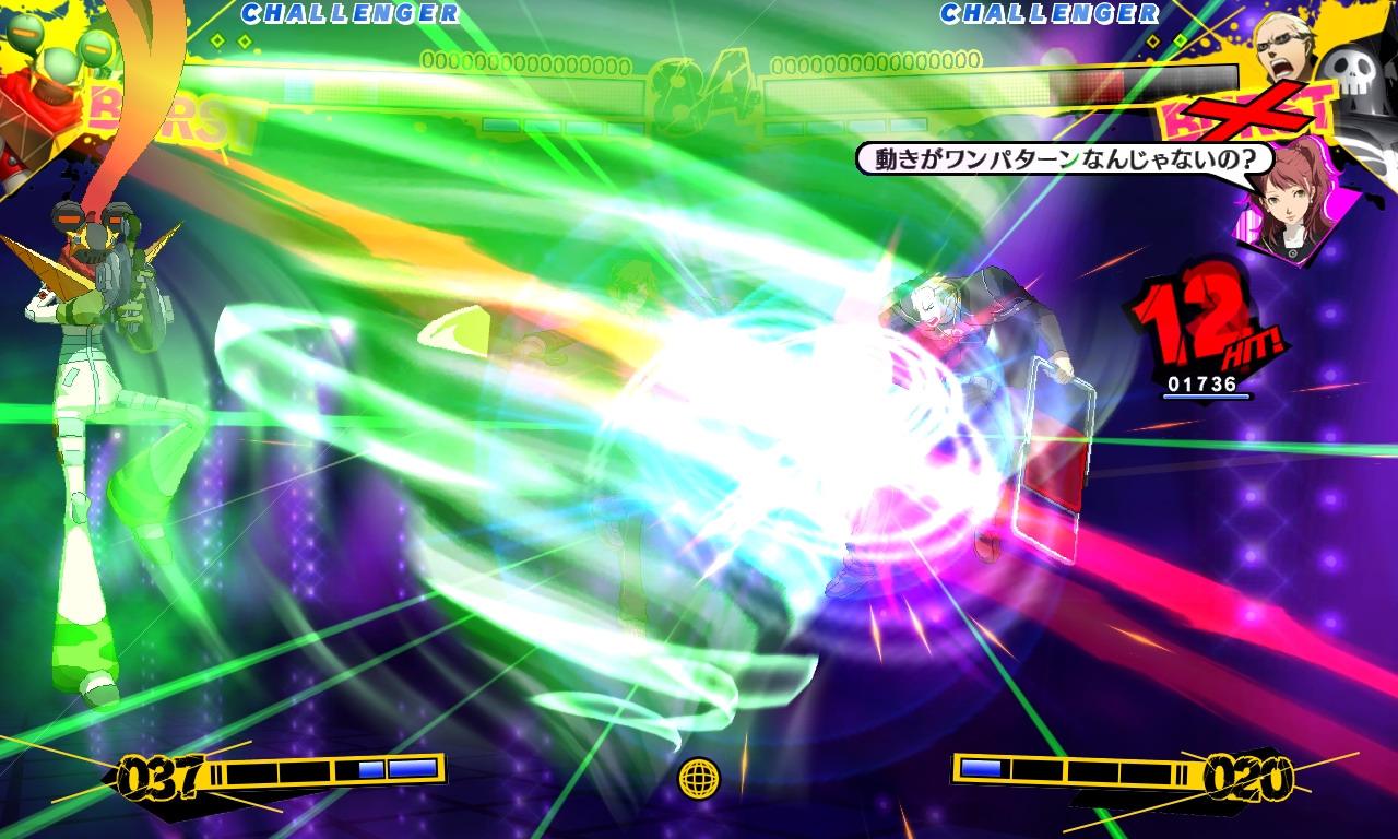 遊戲中玩家可以使用角色直接攻擊,也可以召喚替身(ペルソナ)攻擊。每個角色都具備特有的「必殺技」,消費 SP 計量表可以施展強力的「超必殺技」,體力降至一定程度以下就會發動「覺醒」狀態,此時 SP 計量表的存量與最大值都會增加,並可施展最強的「覺醒超必殺技」。