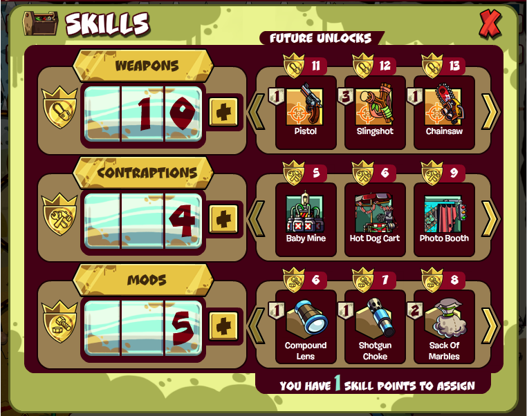 陣容再強,也難免會被大軍突破,這時就是「裝備」上場的好時機。玩家可以收集材料製作一些特別的機關,像是可以阻擋殭屍的木牆、將殭屍踢回去的鞋輪,另外也有一些經典武器,像是砍人如割草的電鋸、以及散彈槍等,在士兵擋不住敵人的時候,會是玩家最大的助力。