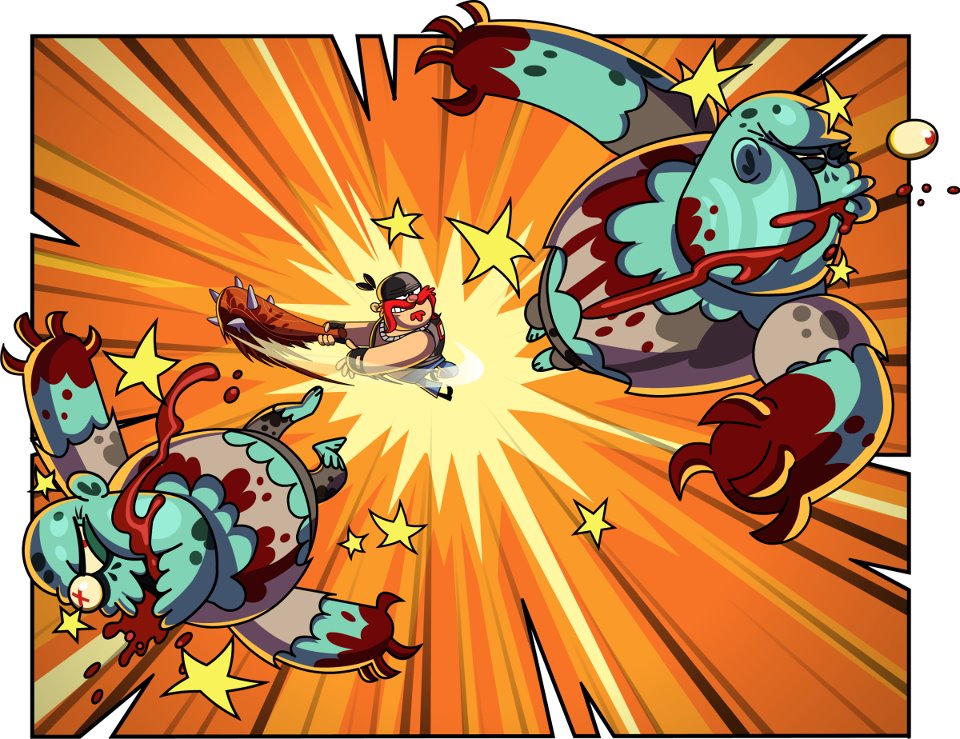 除了玩家之外,不同的殭屍當然也各有千秋,除了普通殭屍之外還有球棒打不到的蝙蝠殭屍、體力高的大殭屍、駕駛飛機的