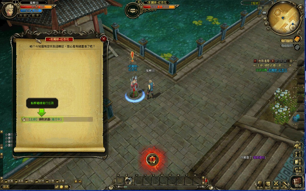 新手任務中,玩家將可在任務面板中給予玩家相關的箭頭提示,任務進程也有清楚的任務追蹤。遊戲內前進方式可用滑鼠點擊,也可用鍵盤「W、A、S、D」鍵控制前進方向,玩家可以依照個人使用習慣來使用喔。