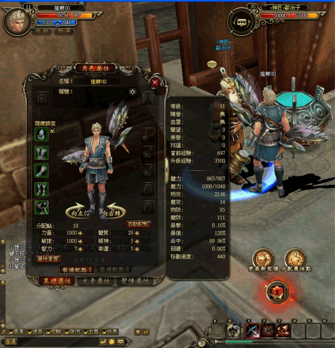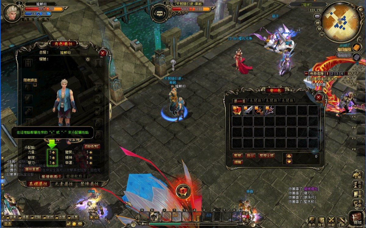 跟著主線任務前進,玩家可從任務 NPC 中獲得「力量系」、「敏捷系」、「魔法系」的三種武器,只要透過屬性配點,就可使用其中一種武器。