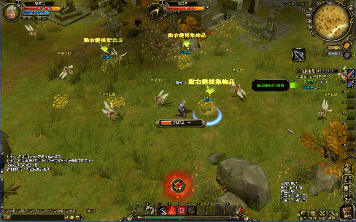 遊戲任務包羅萬象,連採集任務遊戲系統提示也相當清楚,對著任務目標點擊滑鼠右鍵就能順利採集完成任務。