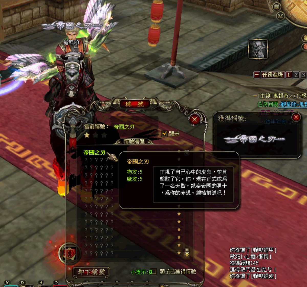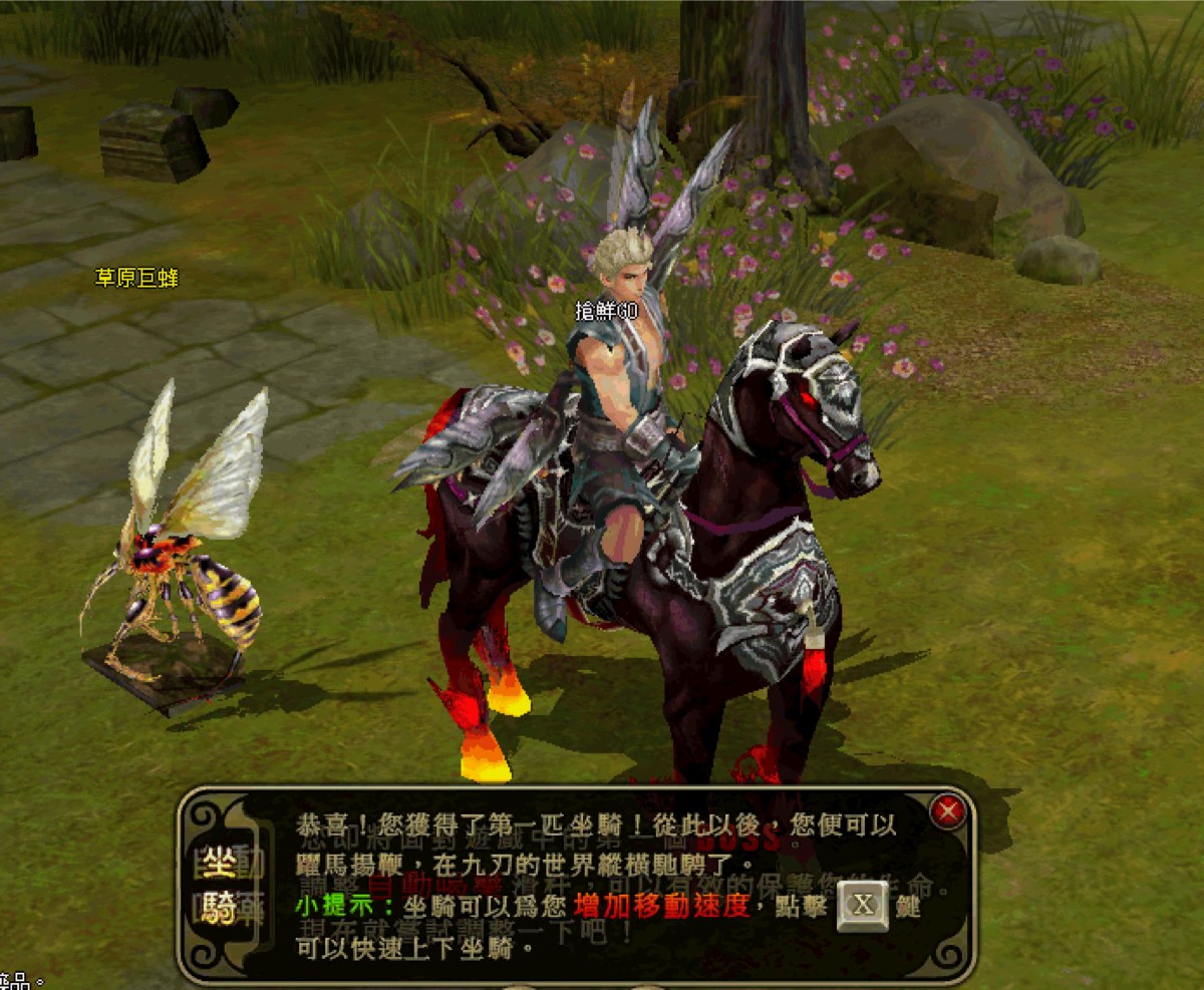 順著任務往下解,將面臨任務中第一個強勁的對手,只要打贏他就可以獲得坐騎-翻羽。