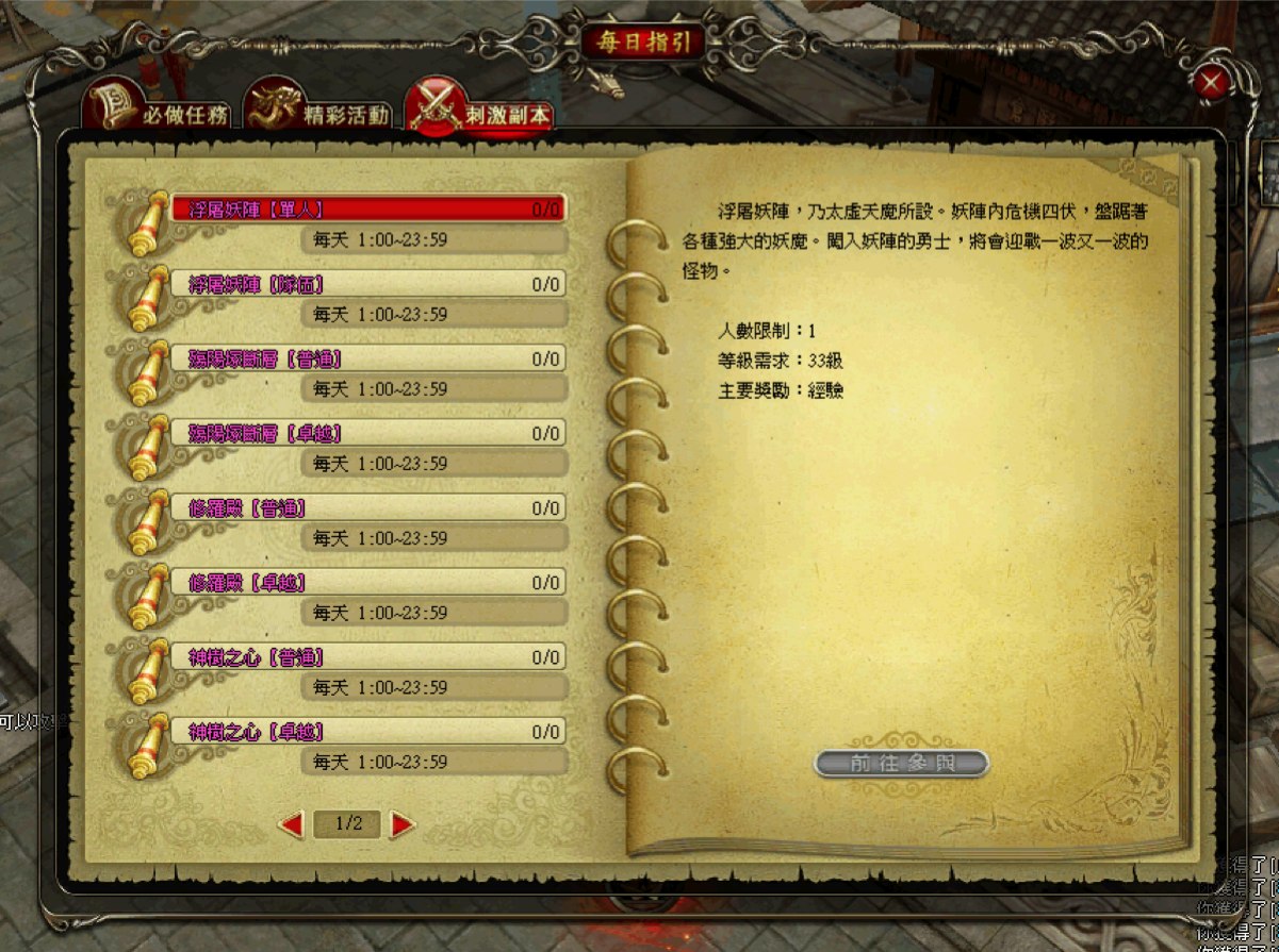 若是想要品質卓越的武器裝備,或是經驗值、金幣、稀有寶物,建議玩家可以找尋隊友打副本,才是最有效率的衝裝、衝等方法。在每日指引中還有許多活動與副本等待著玩家們前來挑戰。