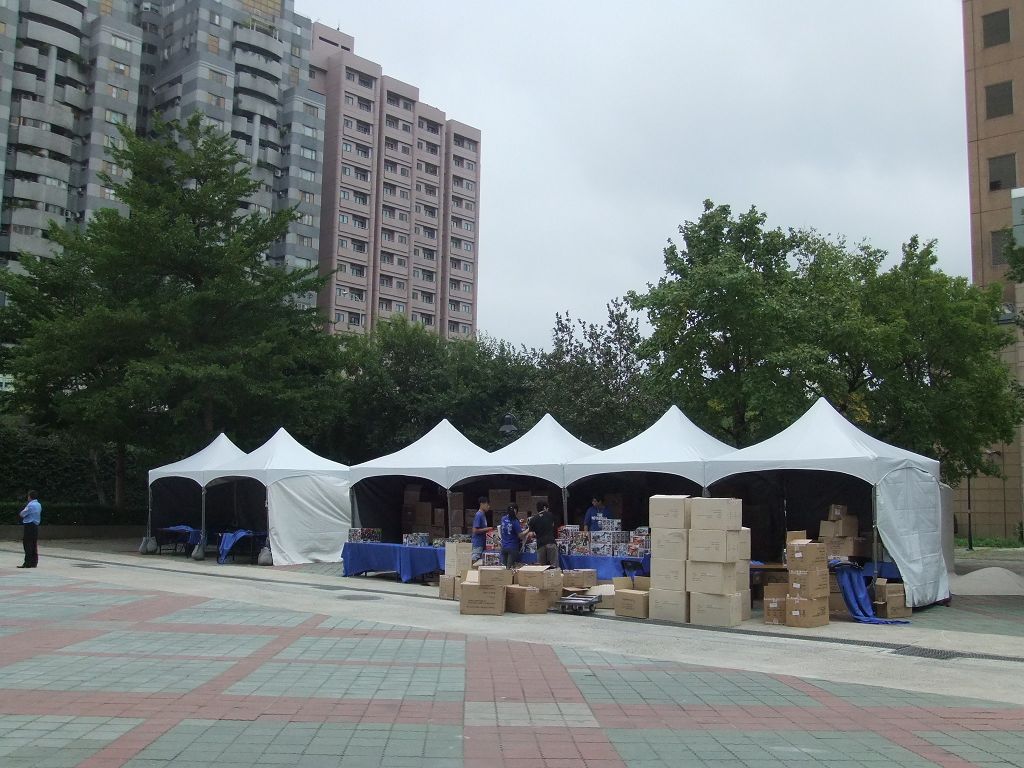 台大體育館外 週邊販售攤位正在準備中