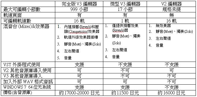 完全版、微型V3和V2編輯器的差異,為大家整理出下面的比較表: