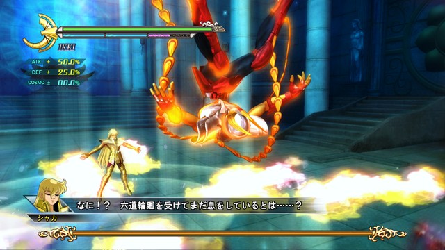 戰鬥中只要按住 R2 鈕加上動作按鈕,就能施展經過小宇宙強化的攻擊招式。
