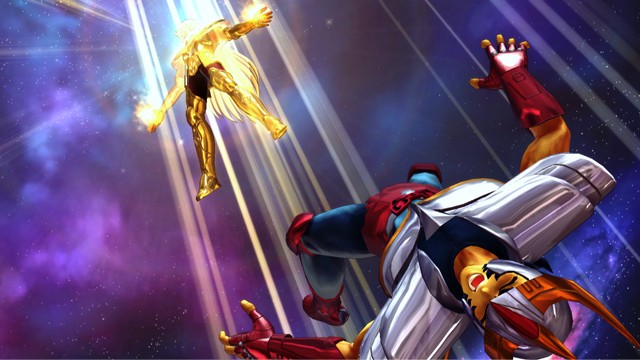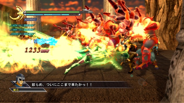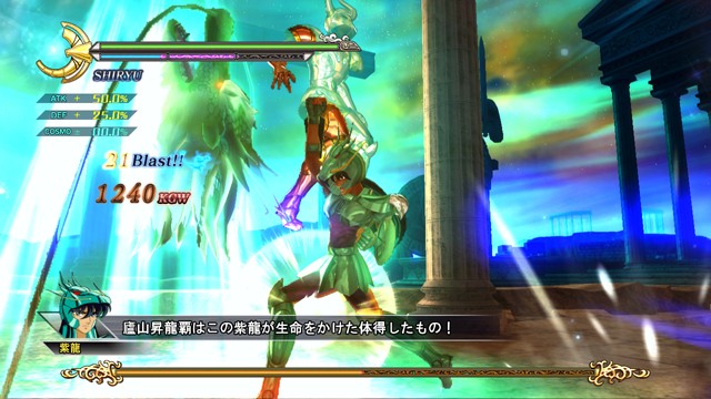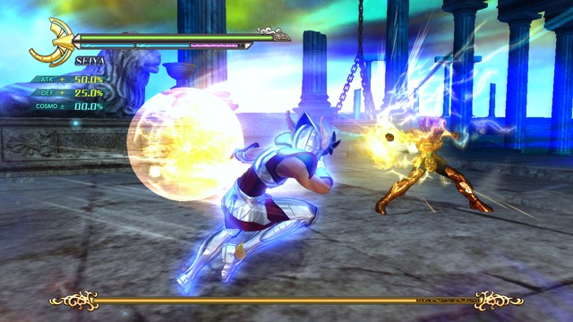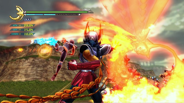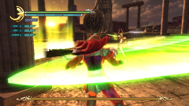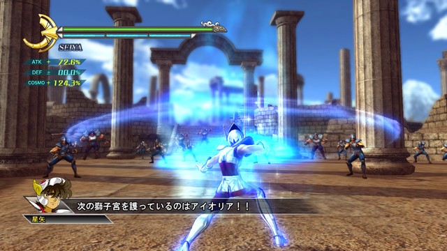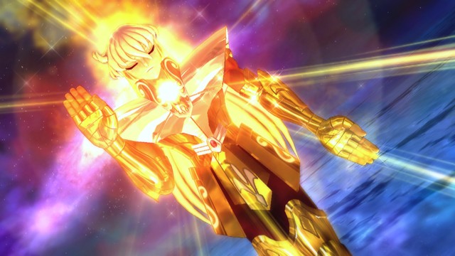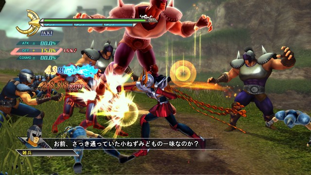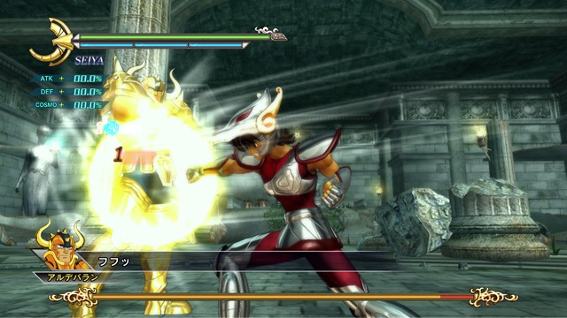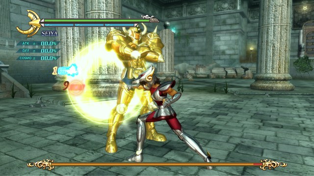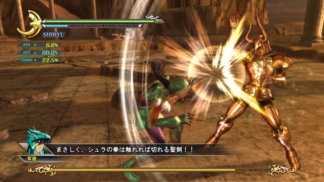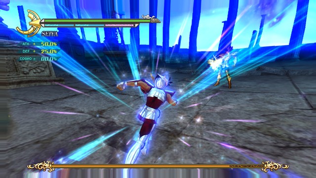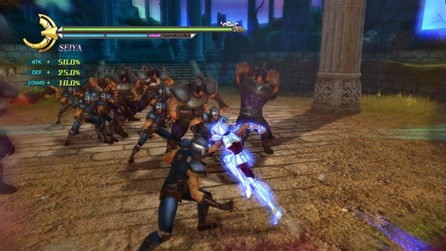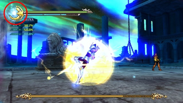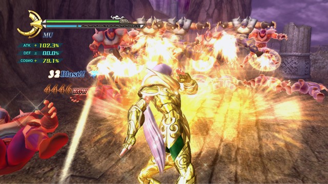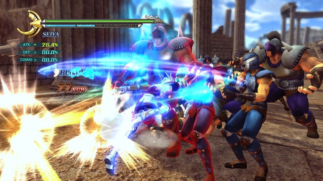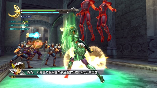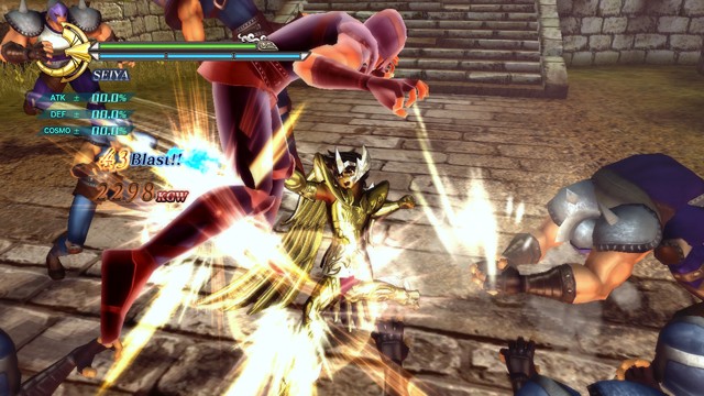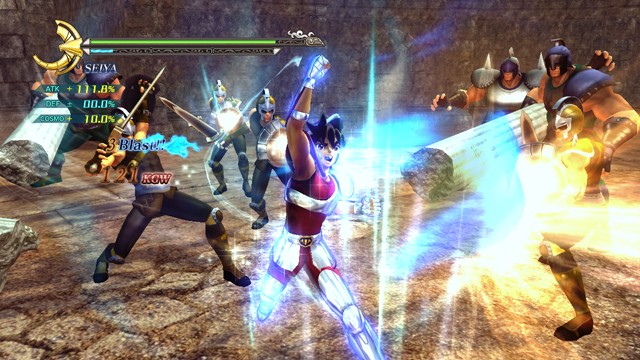 像是 R2 鈕 + 左類比搖桿(移動)可施展超音速爆發衝刺移動,R2 鈕 + ☐鈕(弱攻擊)可施展衝進敵陣打飛雜兵的衝刺攻擊,R2 鈕 + △鈕(強攻擊)可施展把周圍敵人打上空中的上鉤拳,按住 R2 鈕不放可以進行小宇宙蓄力,小宇宙提升後就能恢復小宇宙計量表或是聚集周遭道具。