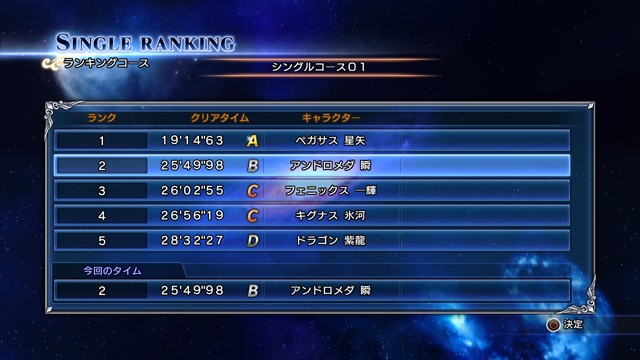讓玩家挑戰有別於一般聖域十二宮的形形色色關卡、競爭過關速度的模式。玩家可以挑選自己喜歡的角色來挑戰最快過關,除了主角的 5 名青銅聖鬥士之外,還可以選擇亦敵亦友的 12 名黃金聖鬥士。每次過關的紀錄都會保存下來,可透過網路上傳到線上排行榜與所有玩家一較高低。