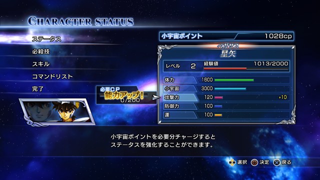 遊戲中玩家只要順利過關,就可以獲得經驗值讓聖鬥士升級以強化能力,還可以使用關卡中取得的「小宇宙點數(小宇宙ポイント,CP)」進一步提升能力數值,或是學習必殺技與是技能。