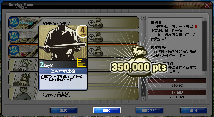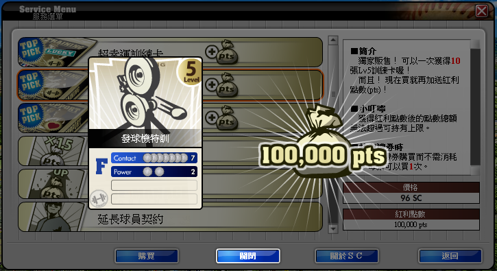 A.100% 大成功的訓練卡,購買同時還有機會獲得 4,000~300,000 點紅利。