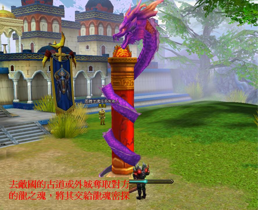 龍魂爭奪」,故事內容講述敵國在外城和古道分別豎立起了圖騰龍柱,試圖藉此引來龍之魂的力量以增強戰鬥力。玩家必須去敵國的古道或外城奪取對方的龍之魂,將其交給