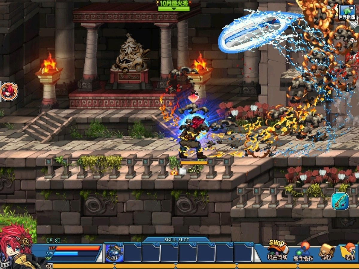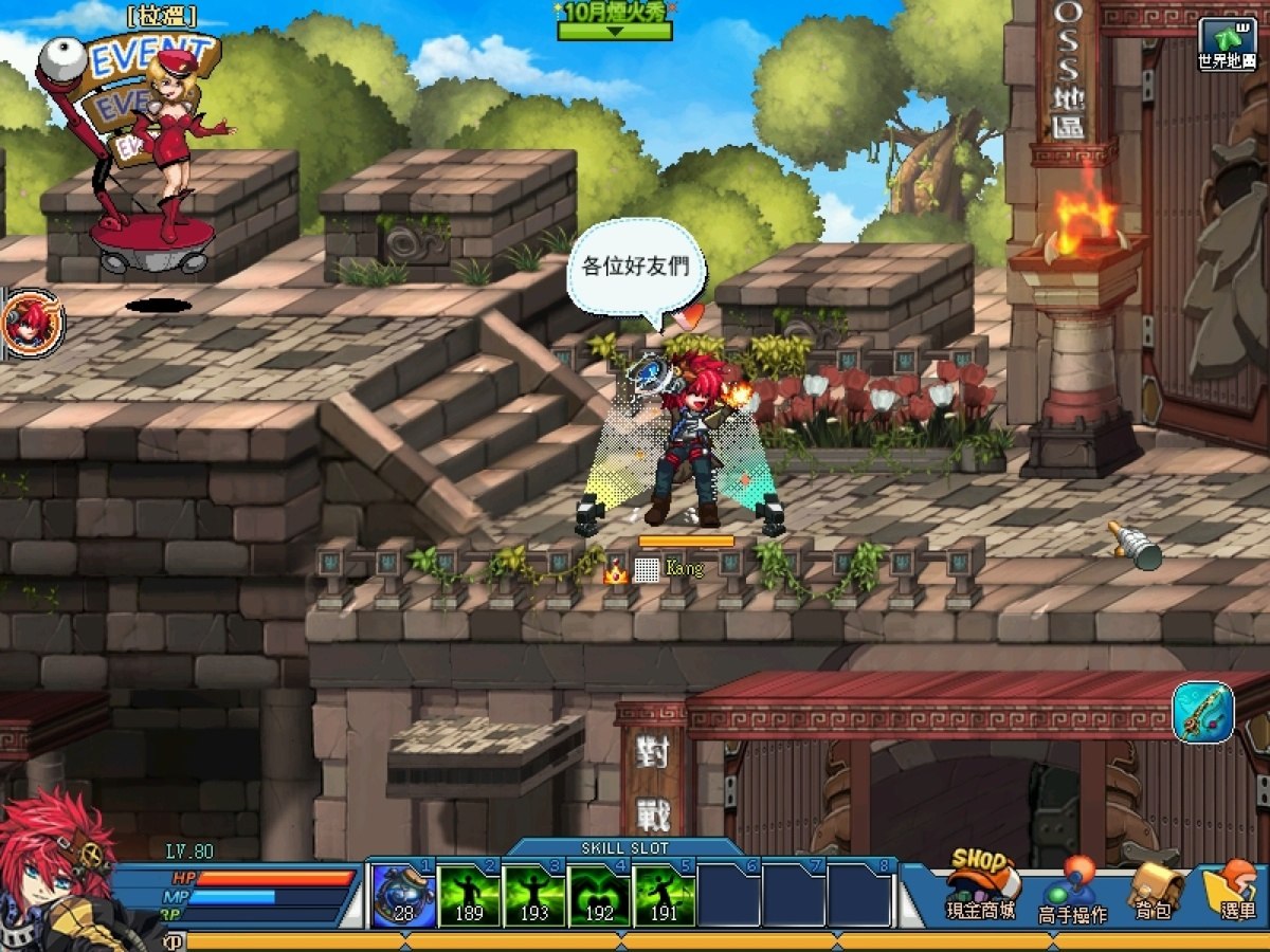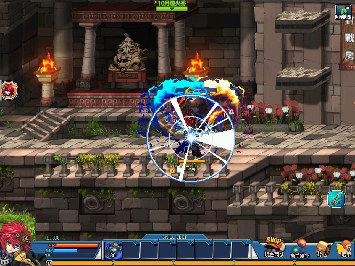 10 月煙火秀:同上述活動期間內,玩家只要上線滿一小時,即可獲得煙火道具一個,施放煙火除可看到美麗的煙火效果外,還可得到「煙火商品兌換券」1 張,只要蒐集 5 張煙火商品兌換券,還可和「NPC 拉溫」兌換「技能點數 +3」、「防禦力增加藥水 1 個」、「手+腳攻擊力增加藥水」…等各種虛寶。