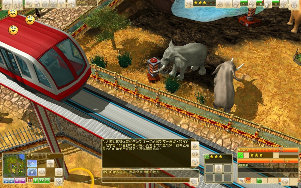 野生動物園大亨 3》中,隨著動物園等級的提昇,許多衝著好口碑而來的難搞客人也將不斷湧入動物園。口袋裡塞著大把鈔票,卻一路批評動物太少、廁所太小、設施不夠好...面對這些「負評奧客」,其實只要有空多看看遊客留言簿,針對遊客狀態欄位下列出的需求一一改善,他們會更加心甘情願地在動物園裡花銀子購買紀念品。