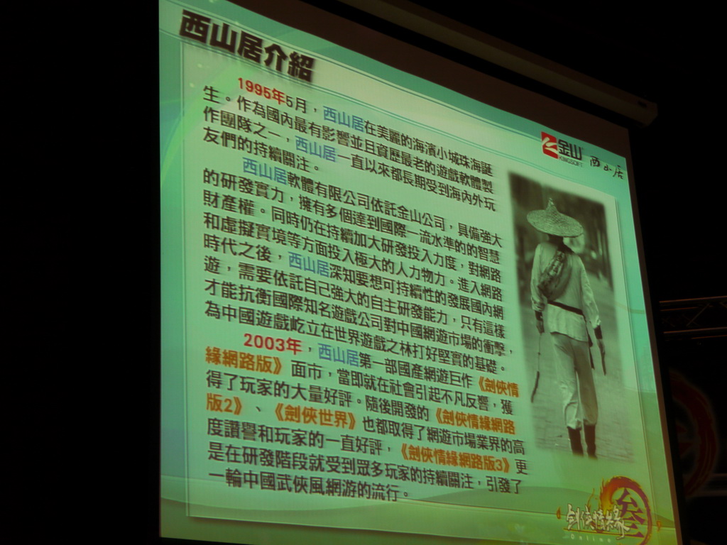 京群超媒體今日下午在西門紅樓舉辦「劍俠座談會」,會中邀請遊戲原廠金山遊戲海外營運中心商務總監林峰來台說明遊戲研發過程與未來計畫,由於製作人郭煒煒簽證問題未能及時來台,現場也特別透過越洋連線方式,讓玩家可以與製作人即時互動,場面相當熱烈。