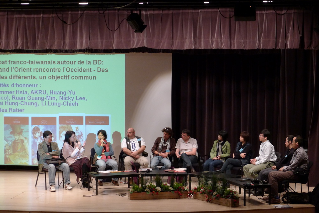 座談會在台法兩地漫畫家了解彼此作品風格中開始,並交換彼此創作的經驗和心得。在法國的漫畫通常由編劇和繪者共同完成,但台灣漫畫家幾乎都是一手包辦;台灣漫畫家蔡鴻忠對於法國同行一年出版一本約 60 頁左右的工作狀況,不禁對法國悠閒的生活步調感到羨慕;但在場三位法國漫畫工作者一聽到台灣漫畫家一年要畫 300、400 頁,對於台灣漫畫家豐沛的創意和工作效率更大表佩服。