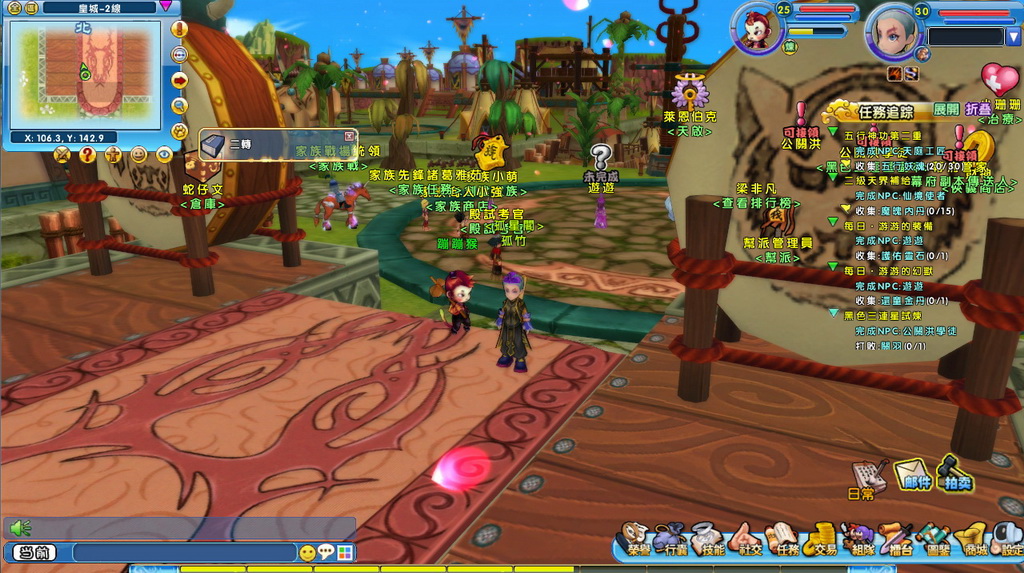 他表示,在遊戲中為了達到讓玩家輕鬆休閒遊玩的理念,因此沒有很強的 PK 要素,而是以比賽切磋方式,像是家族戰來搶旗,藉此凝聚玩家彼此間的向心力;家族同時也有繁榮度、活躍度設計,同時有專屬家族商店、家族任務等,有助於家族族長來協商每位成員的分工,增加彼此的互助合作與凝聚力。
