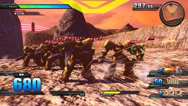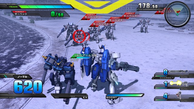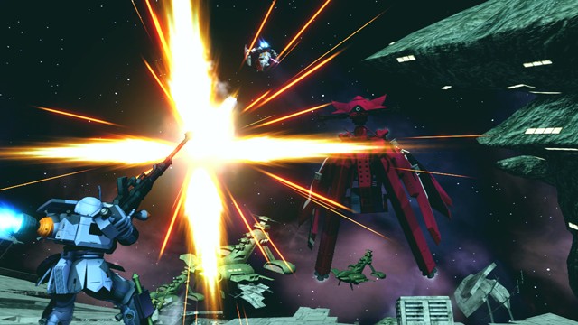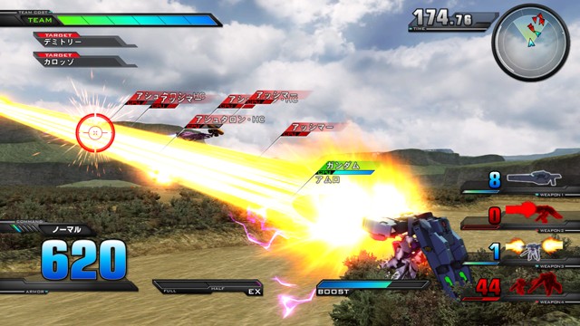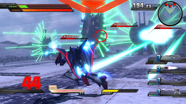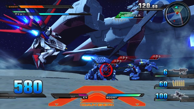除了敵人之外也可以看到本作會登場例如「阿卡馬(アーガマ)」和「大天使(アークエンジェル)」等戰艦,也會以敵 / 我方來進行攻擊或援護,不管其攻擊力和耐久力都十分具有份量。