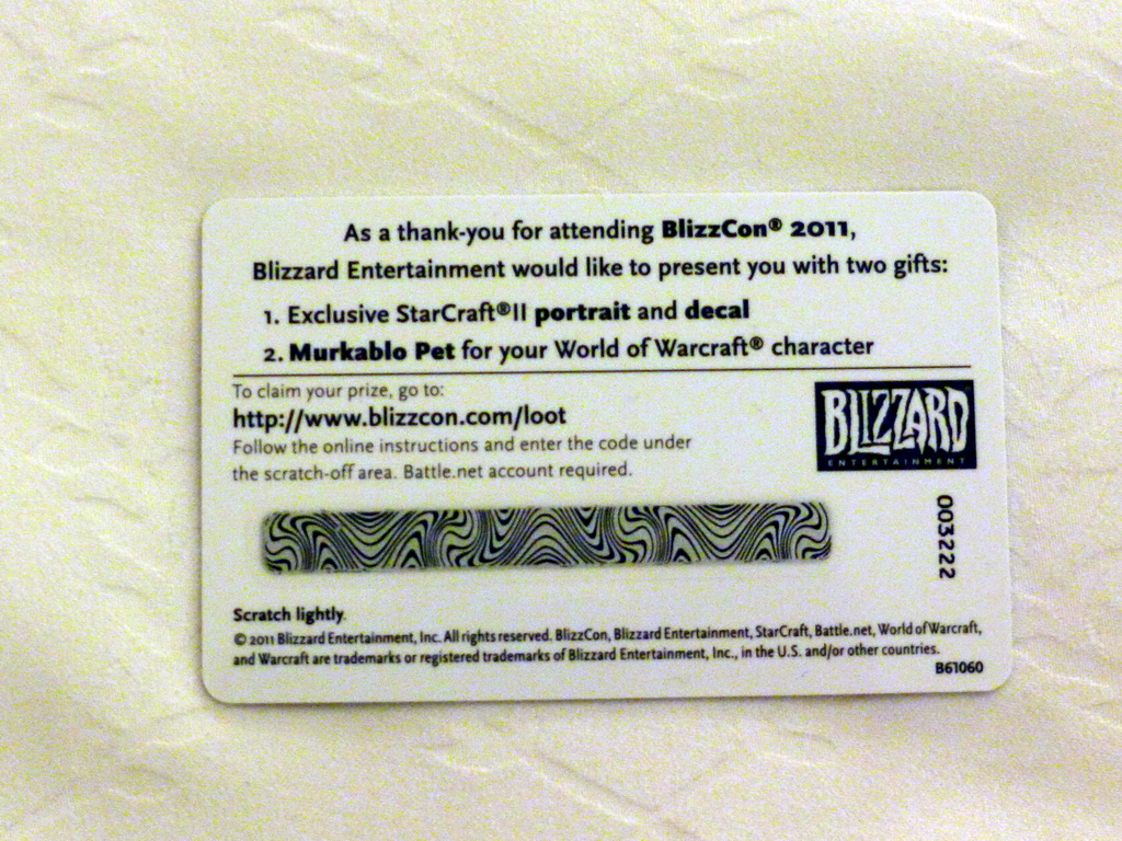 當然,還有BlizzCon 限定禮物卡、刮開背面序號、就可兌換 BlizzCon 獨家限定《