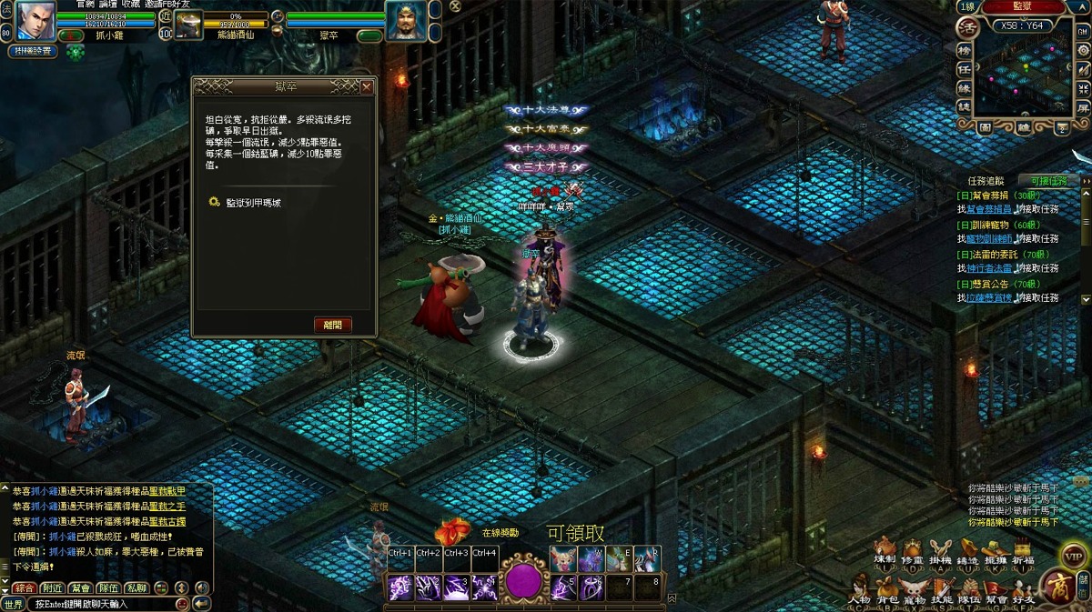 當玩家在遊戲中的非 PK 戰場場景擊殺他人,就會累積 4 點罪惡值,當罪惡值大於 0 時,線上每 20 分鐘,可減少 10 點罪惡值,而當罪惡值滿 100 時被其他玩家擊殺,便被直接被押送到監獄,在監獄當中,有兩個藍礦和四個流氓(也可能有其他囚犯),玩家想要脫獄,唯有通過採集藍礦和擊殺流氓來降低罪惡值,當罪惡值回到 0,角色 ID 由紅色轉為白色,接著與獄卒對話,就可以離開監獄,結束刑期。