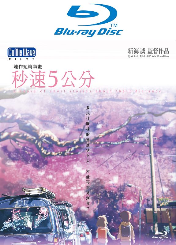 《秒速五公分》(BD) 發行公司:普威爾 特 典:DVD(約 139 分)、8P 全彩解說手冊 定 價:1080 元 遠野貴樹與篠原明里在小學畢業後即分隔兩地,雖然兩人對彼此都抱有著特別的思念,但時間仍無情地一天天流逝。在某個下著大雪的日子,貴樹終於決定要去見明里…。本作品一共分成描述貴樹與明里的幼小愛苗與他們重逢之日的「櫻花抄」、以對進入高中就讀的貴樹懷有好感的澄田花苗觀點來詮釋的「太空人」,以及描述兩人內心之徬徨,與本作片名同名的「秒速5公分」等三話。以「現在、這裡」的日本為舞台,搭配抒情式畫面詮釋的連作短篇動畫作品。 |