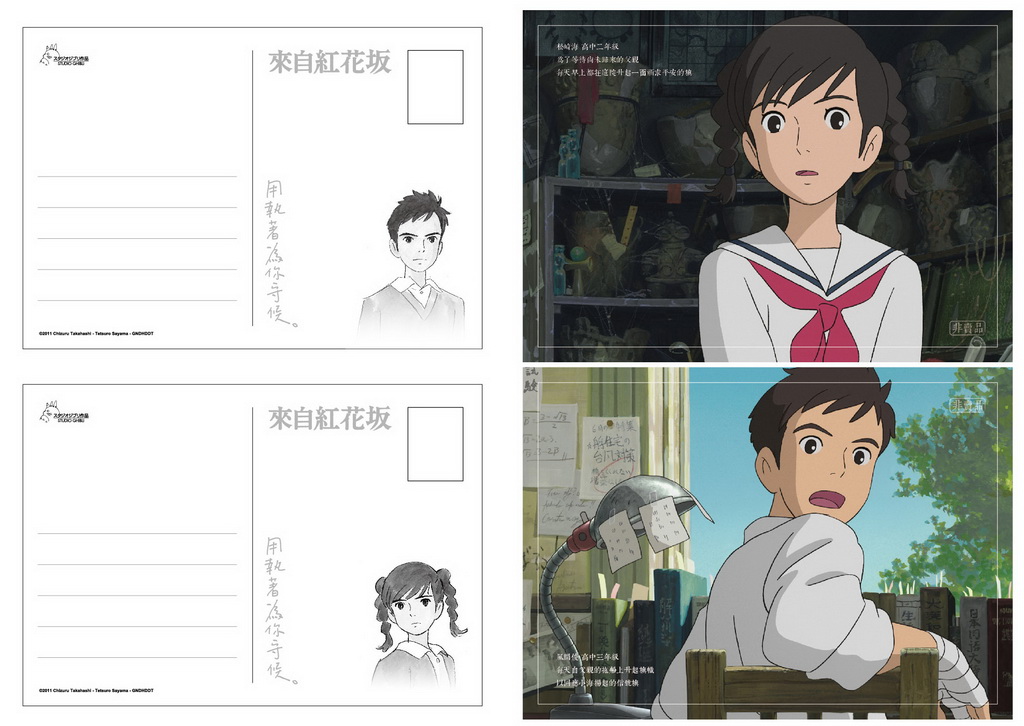 來自紅花坂》電影交換券乙張外加六張電影劇照明信片,讓粉絲朋友可以動手親筆寫上對喜歡的人的思念並寄送給對方。《