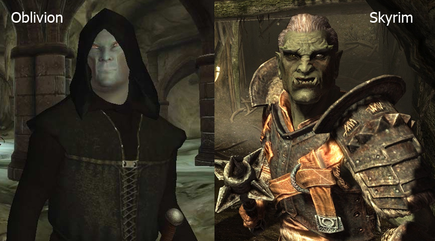 | 左圖為《上古卷軸 4》,右圖為《上古卷軸 5:無界天際》 |