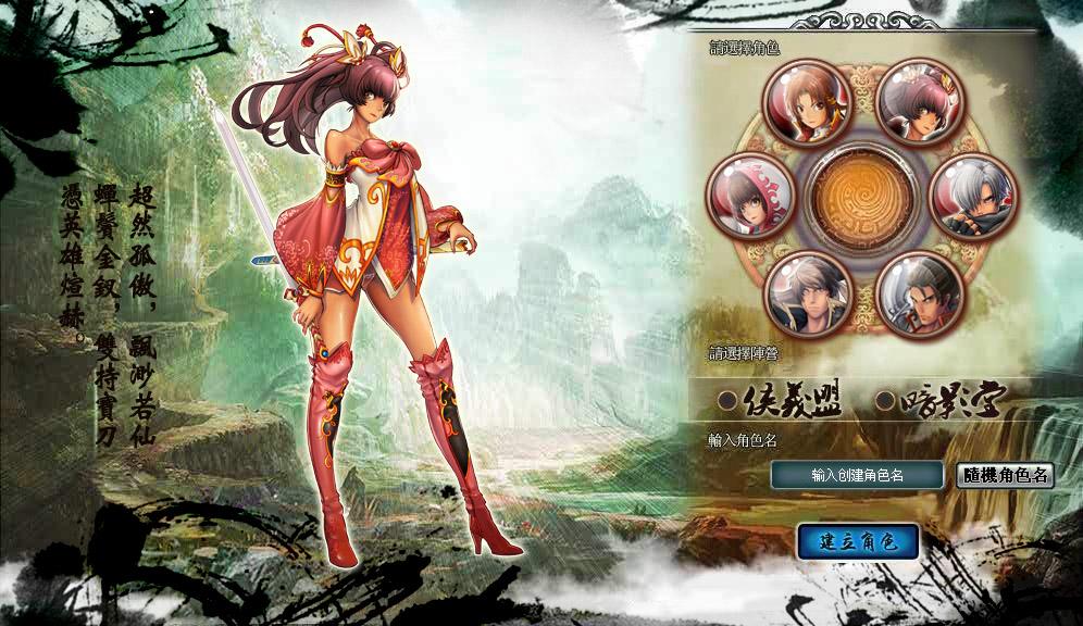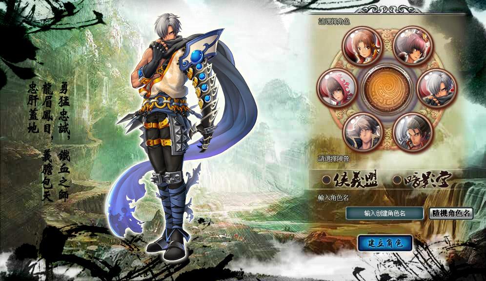 玩家在進入遊戲的時候,可以選擇要加入「俠義盟」或是「暗影堂」,並有六大角色可供選擇,在遊戲中玩家除了需要招募眾多英豪,一同反抗朝廷與外患之外,更要細心建設專屬要塞,如此才能壯大自己的勢力。